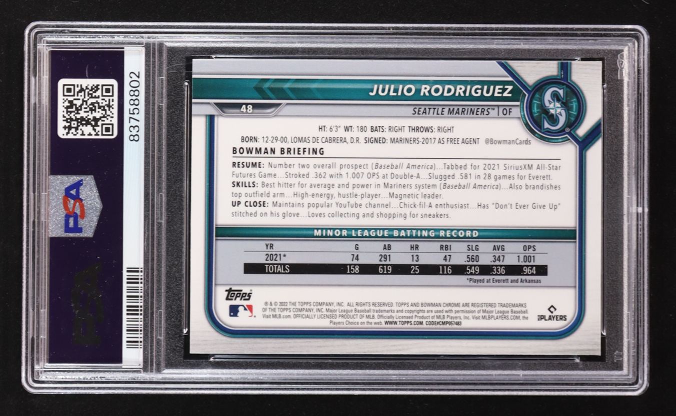 Julio Rodriguez 2022 Bowman Chrome Sapphire #48 RC (PSA 10)