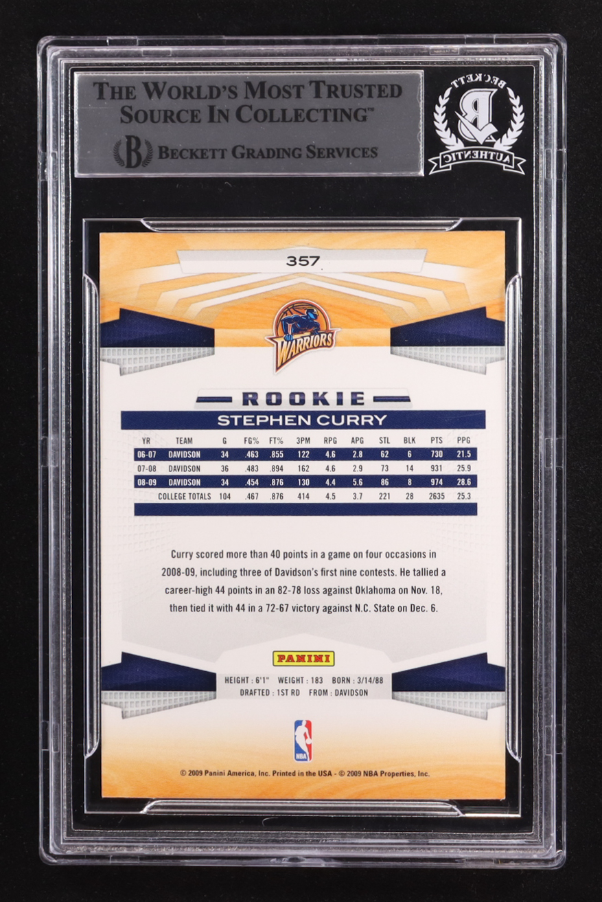 Stephen Curry Signed 2009-10 Panini #357 RC (BGS)