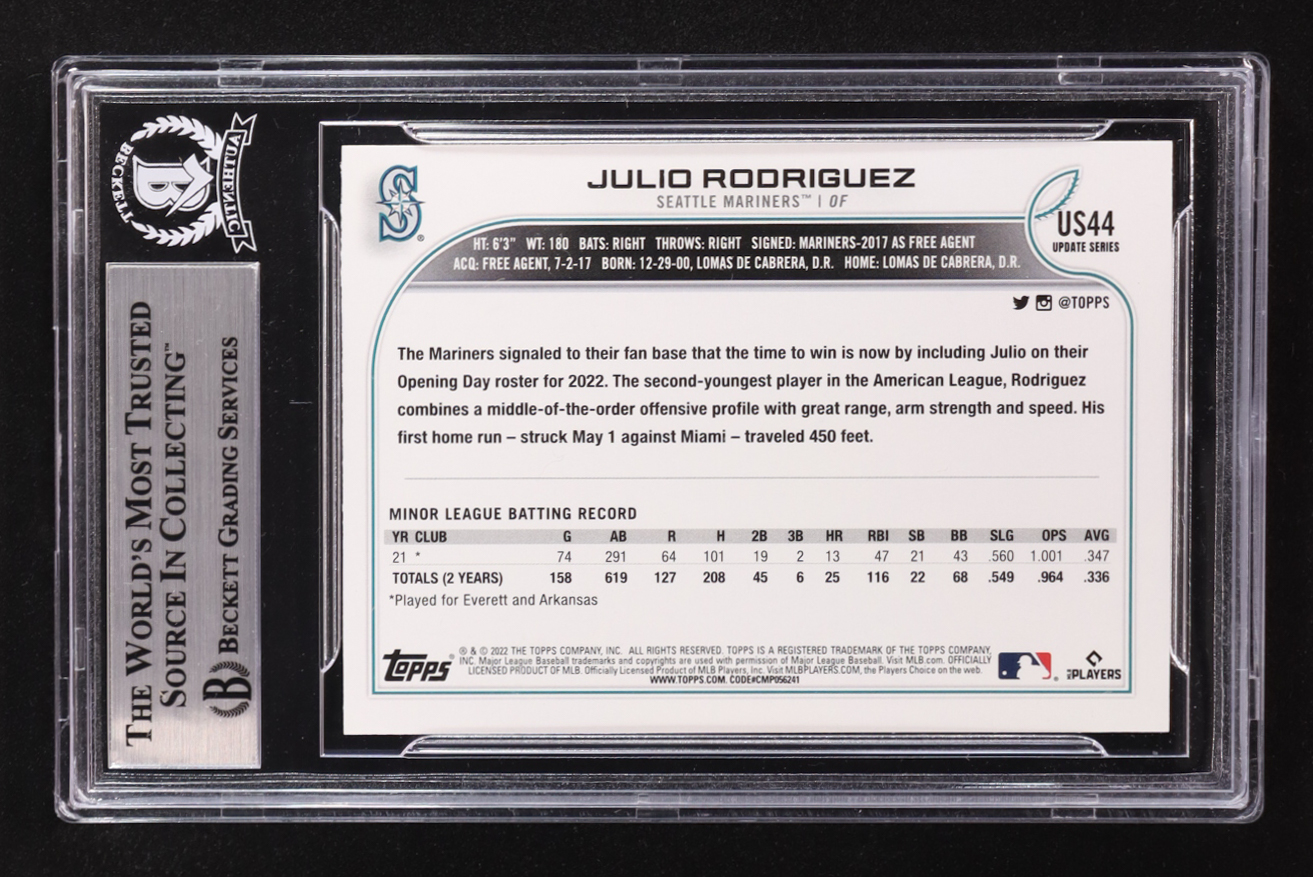 Julio Rodriguez Signed 2022 Topps Update Series #US44 RC (BGS)