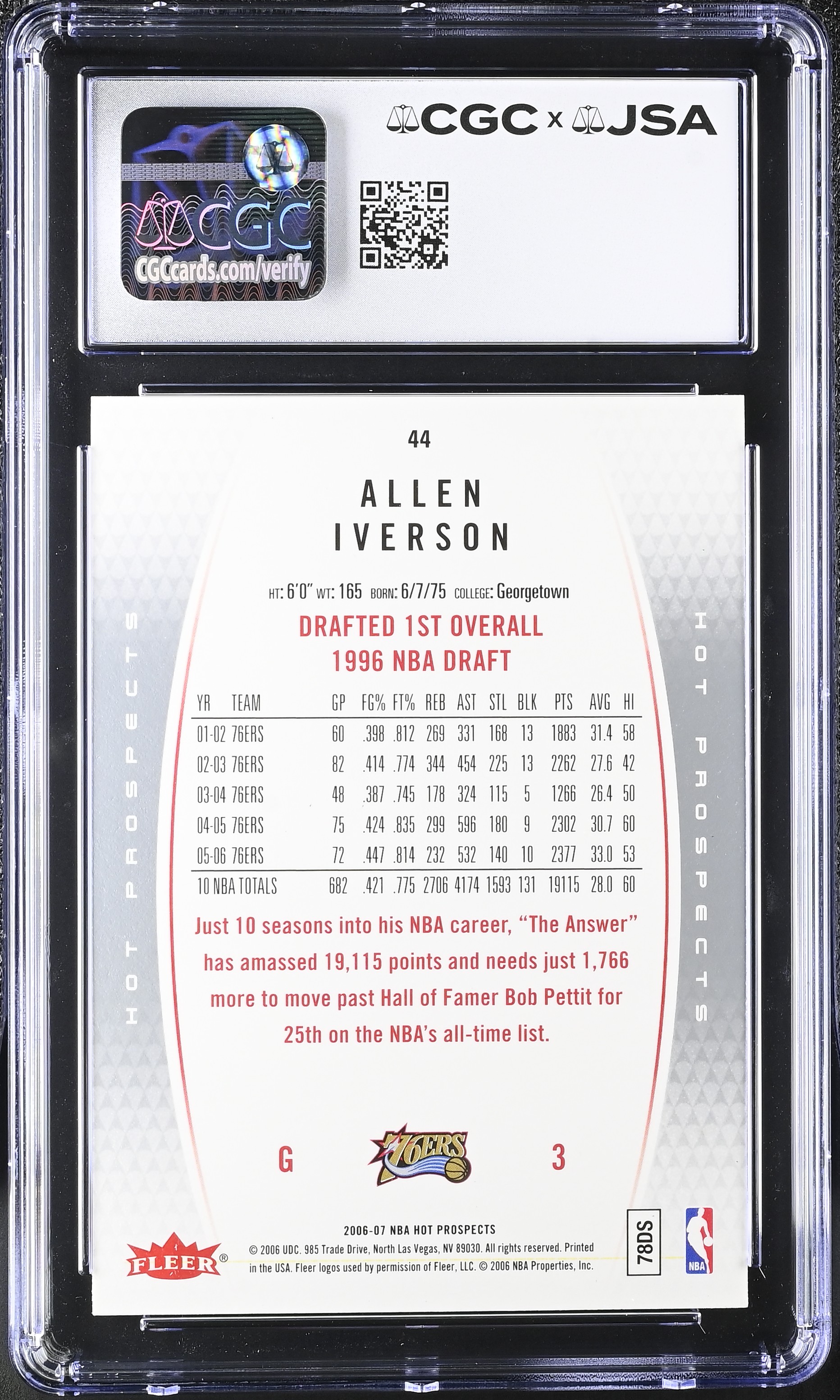 Allen Iverson Signed 2006-07 Fleer Hot Prospects #44 (CGC)