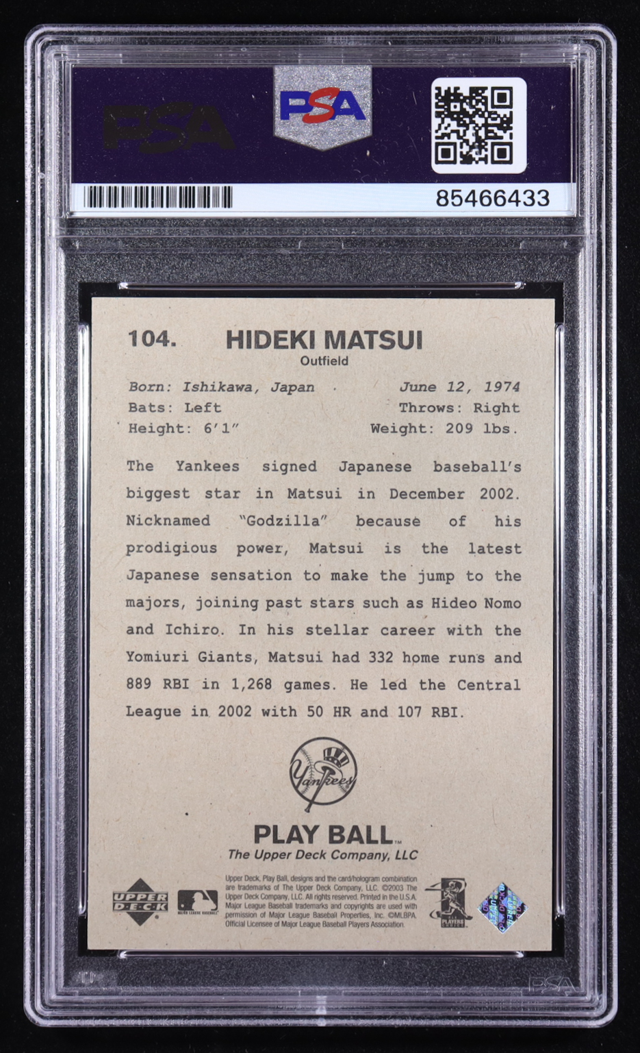 Hideki Matsui Signed 2003 Upper Deck Play Ball #104 RC (PSA | Autograph Grade 10)