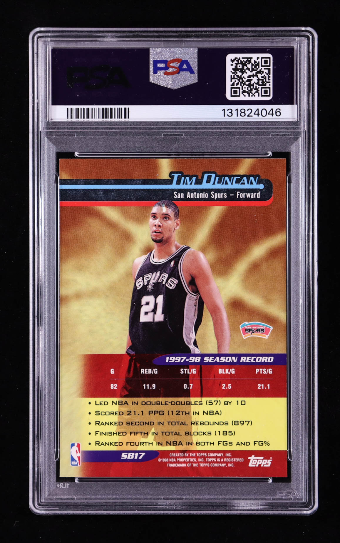 Tim Duncan 1998-99 Topps Season's Best #SB17 (PSA 9)