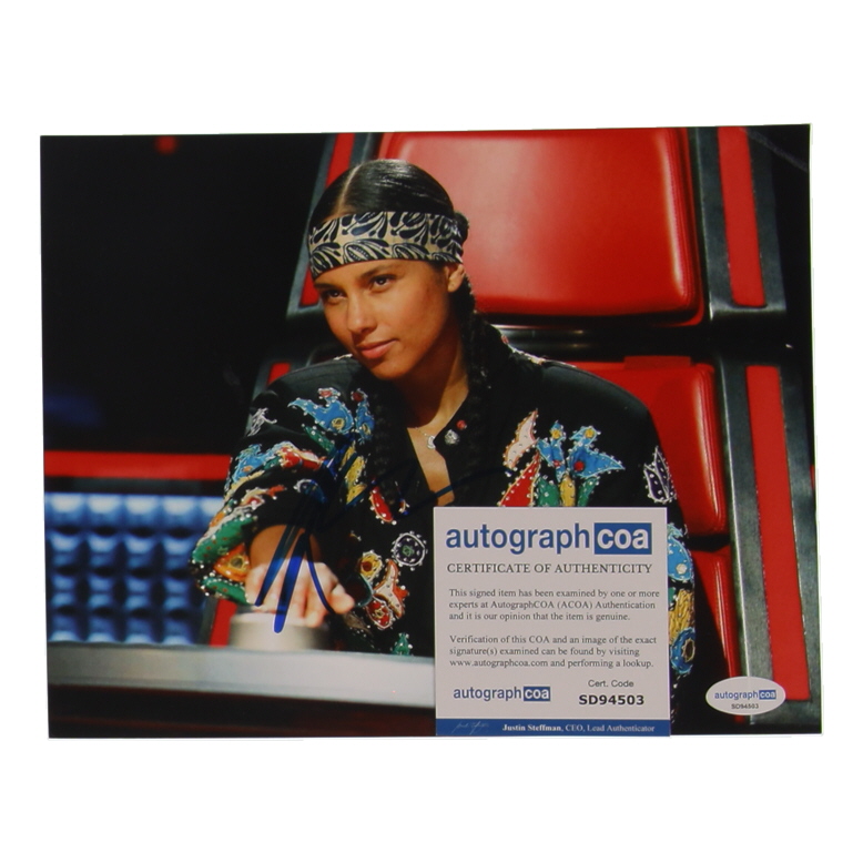 Photo measures 8" x 10" in size and has been hand-signed by Alicia Keys.