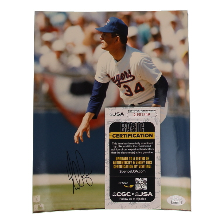 Photo measures 8” x 10” in size and has been hand-signed by Nolan Ryan (Texas Rangers, HOF).