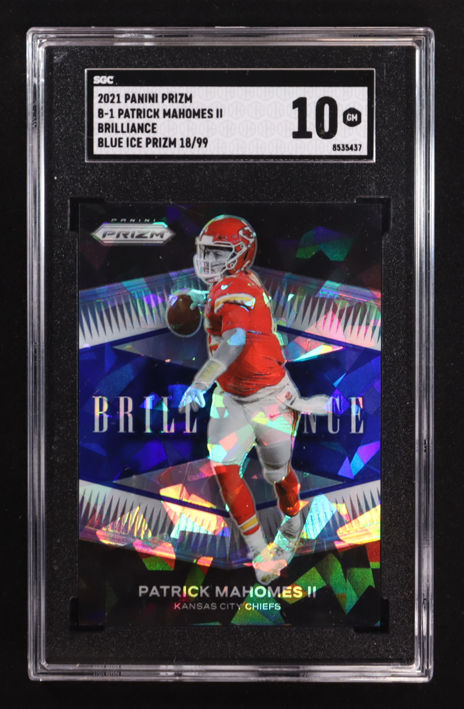 Patrick Mahomes II 2021 Panini Prizm Brilliance Blue Ice Prizm #B-1 #18/99 (SGC 10)