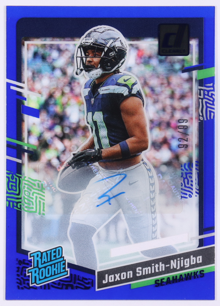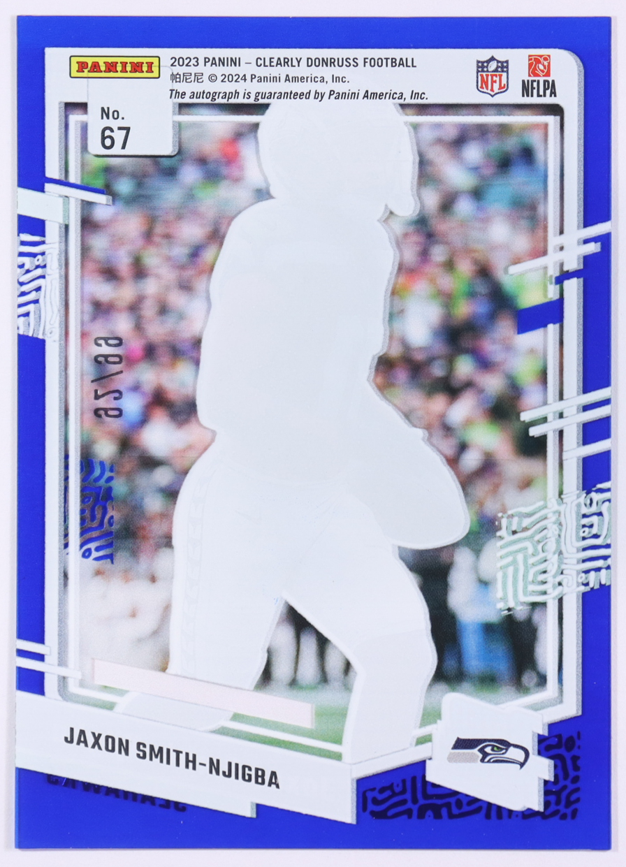 Jaxon Smith-Njigba 2023 Clearly Donruss Clearly Rated Rookie Autographs Blue #67 RC #92/99
