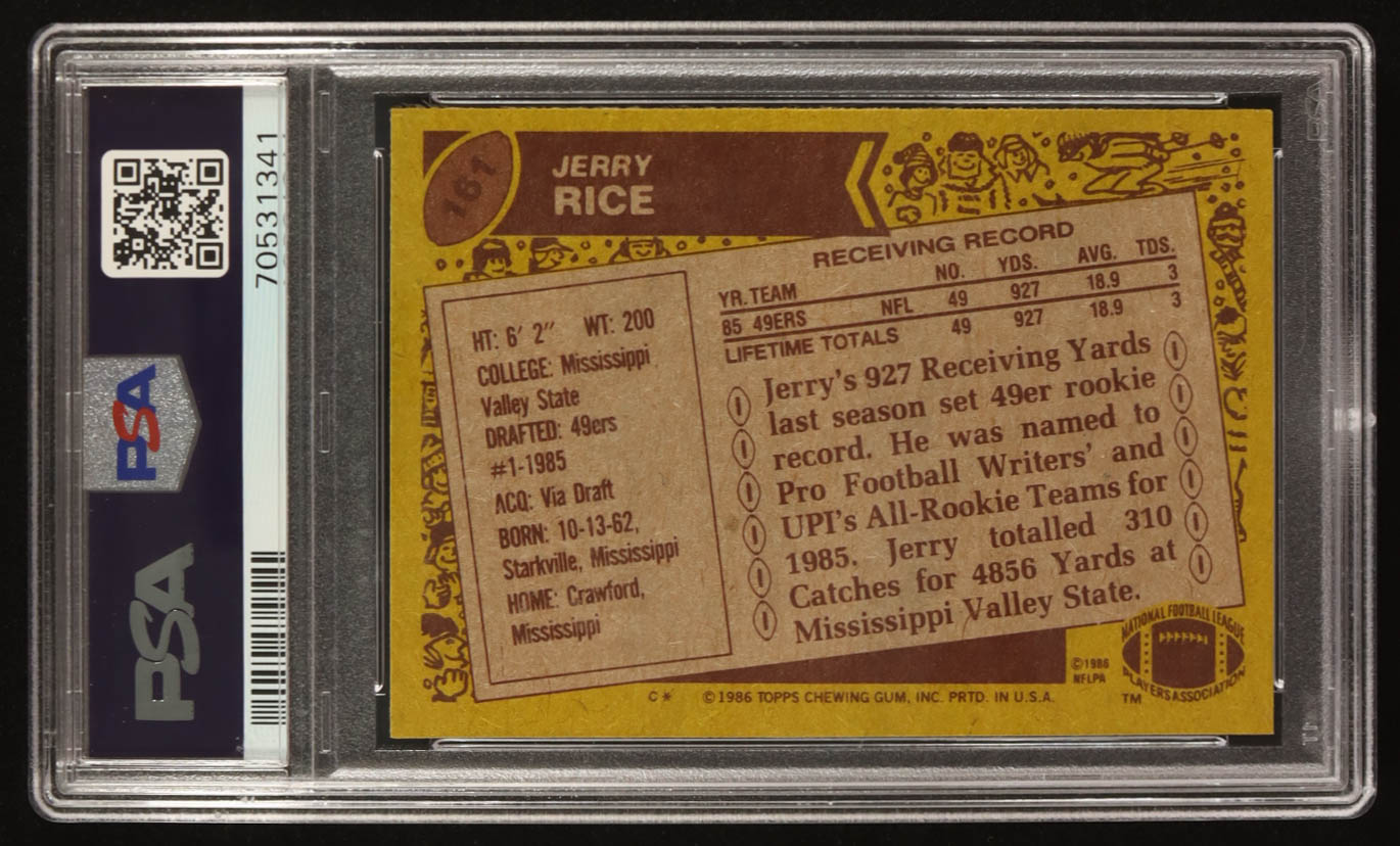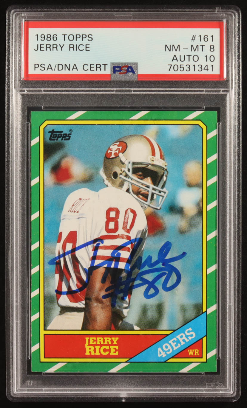 Jerry Rice Signed 1986 Topps #161 RC (PSA 8 | Autograph Grade 10)