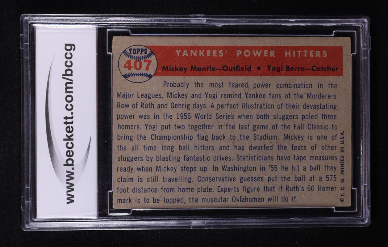 Mickey Mantle / Yogi Berra 1957 Topps Yankees Power Hitters #407 (BCCG 8)