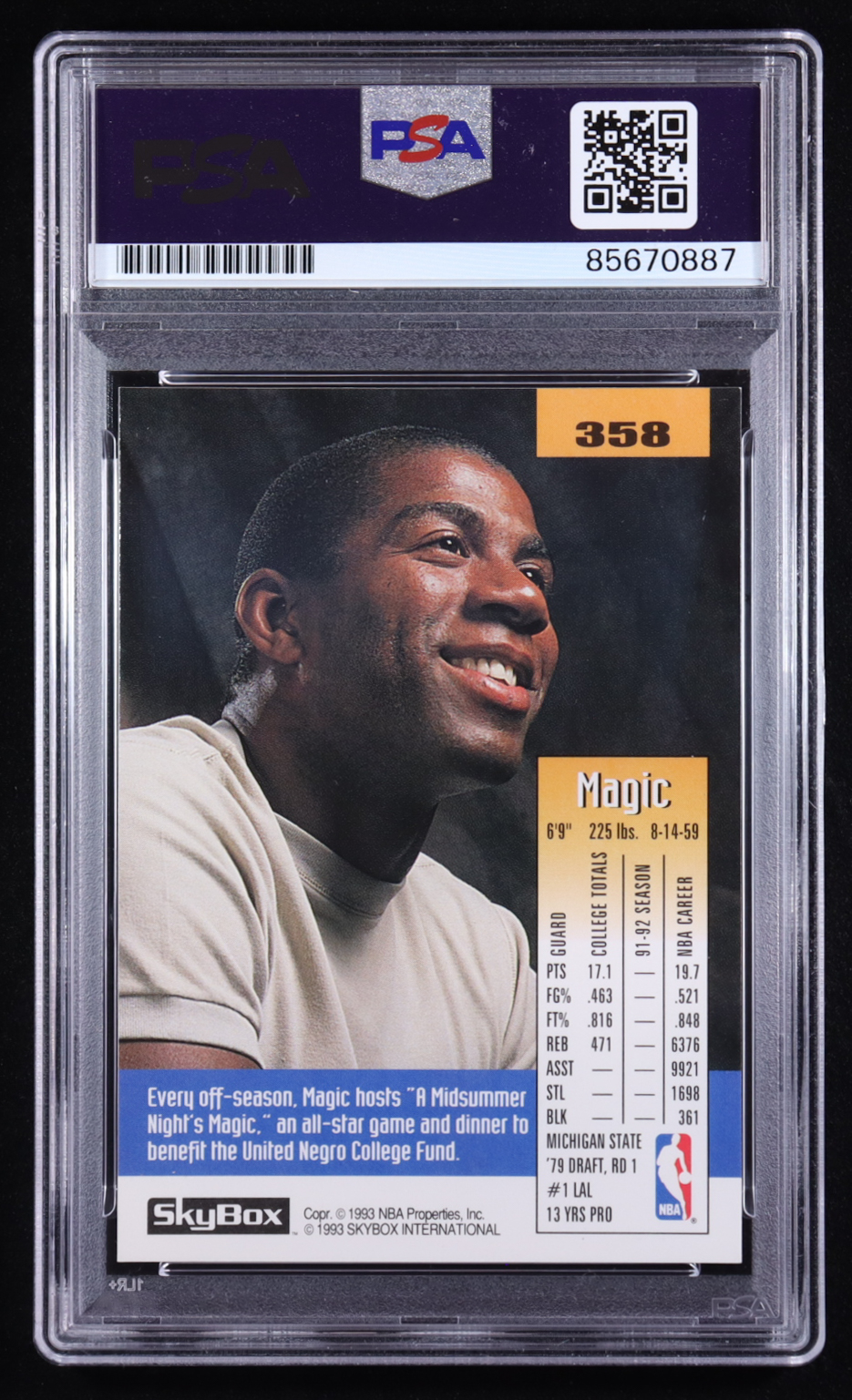 Magic Johnson Signed 1992-93 SkyBox #358 (PSA)