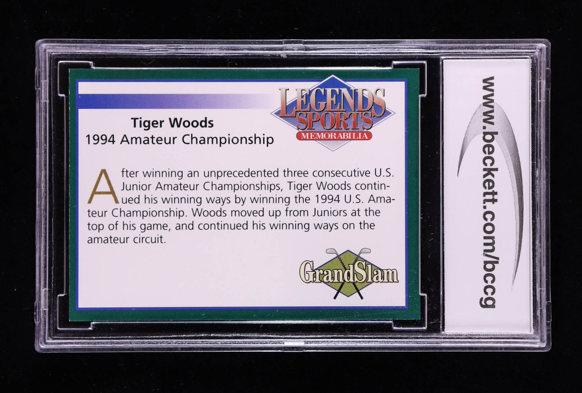 Tiger Woods 2001 Legends Sports '94 Amateur Championship #NNO (BCCG 10)