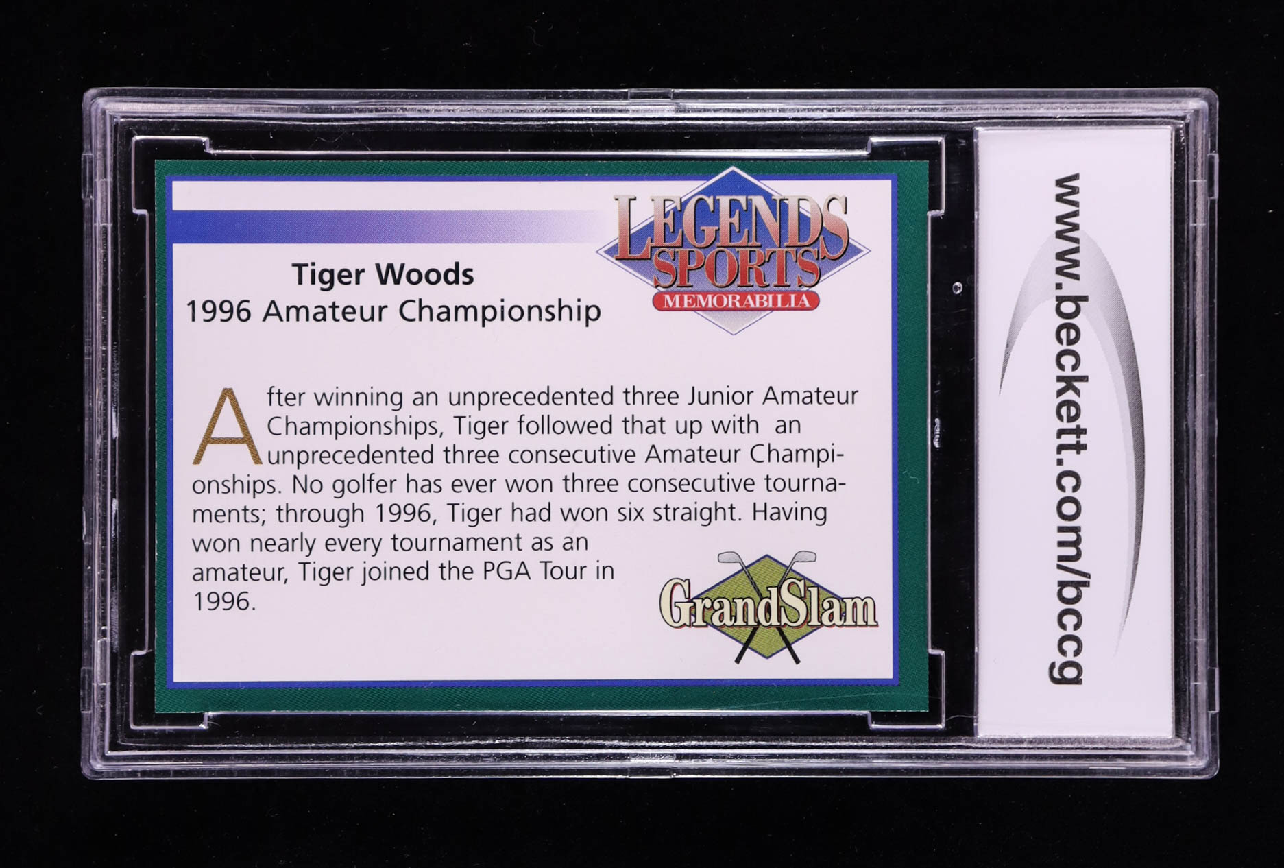 Tiger Woods 2001 Legends Sports '96 Amateur Championship #NNO (BCCG 10)