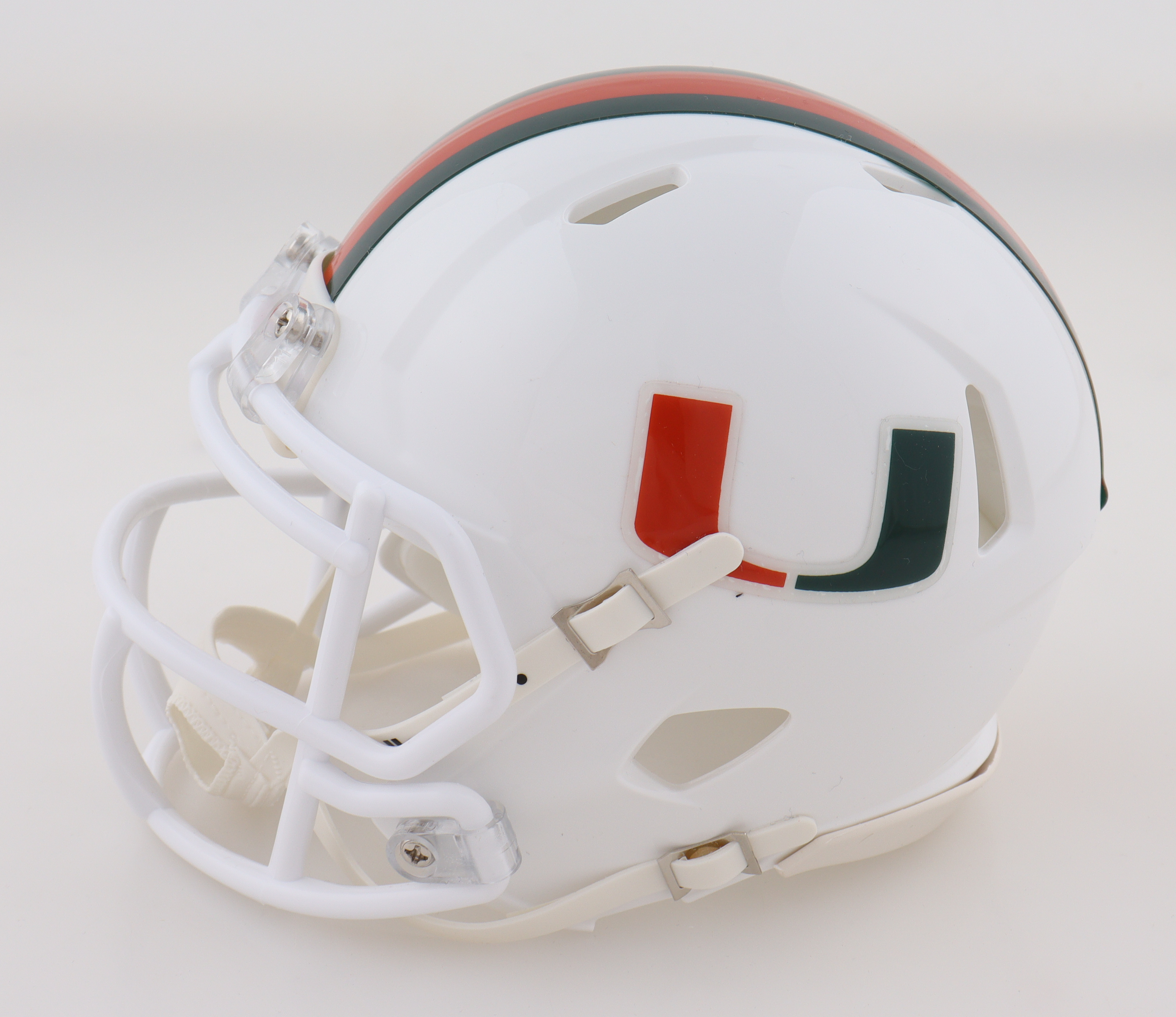 Riddell Miami Hurricanes Speed mini helmet has been hand-signed by Rueben Bain Jr. and Akheem Mesidor.
