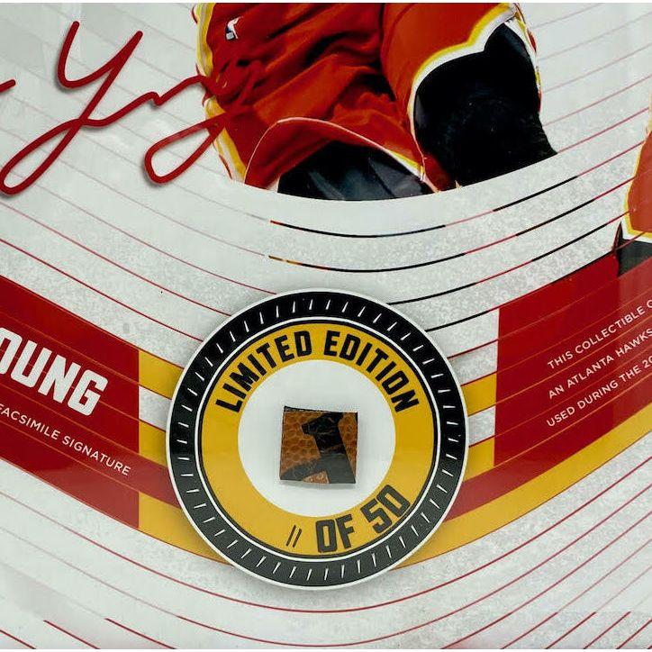 Trae Young Hawks LE Custom Framed Display with Piece of Team-Used Basketball