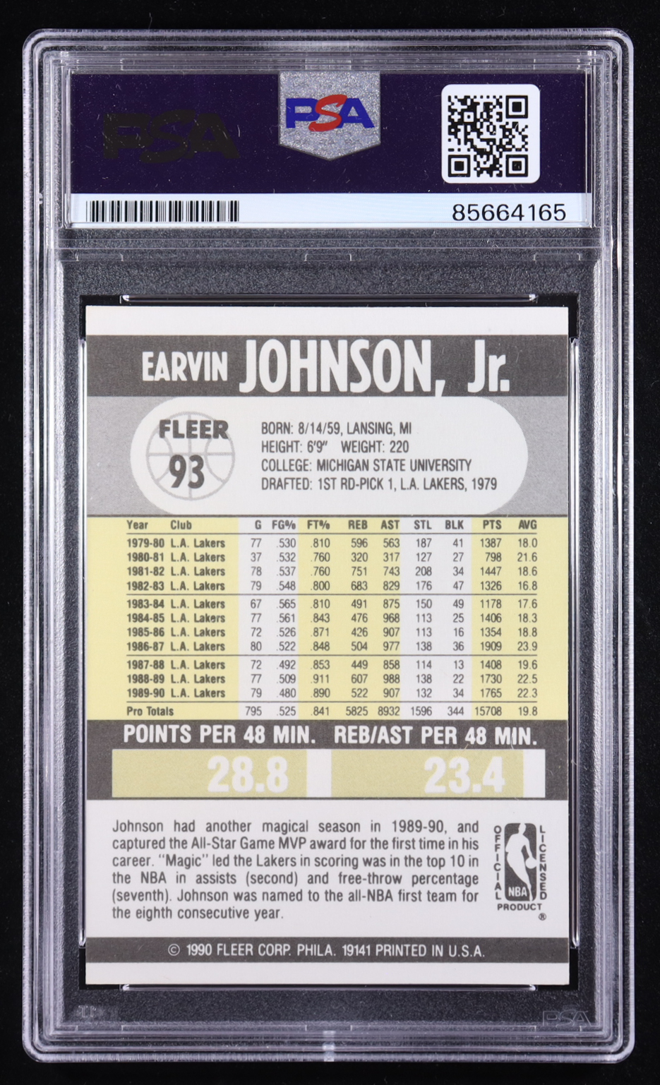 Magic Johnson Signed 1990-91 Fleer #93 (PSA)