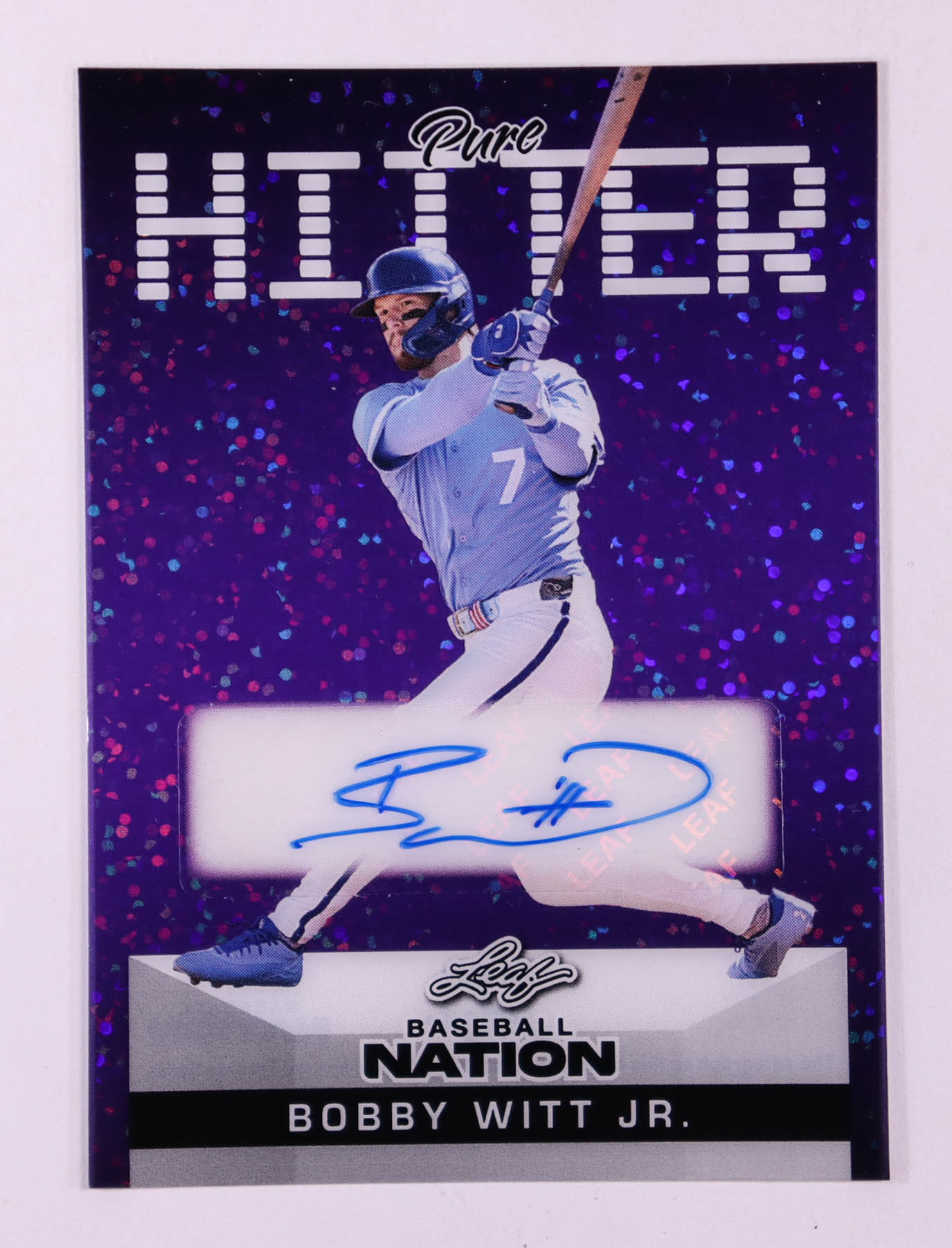 Bobby Witt Jr. 2025 Leaf Baseball Nation Pure Hitter Autographs Purple Sparkle #PABWJ #4/8