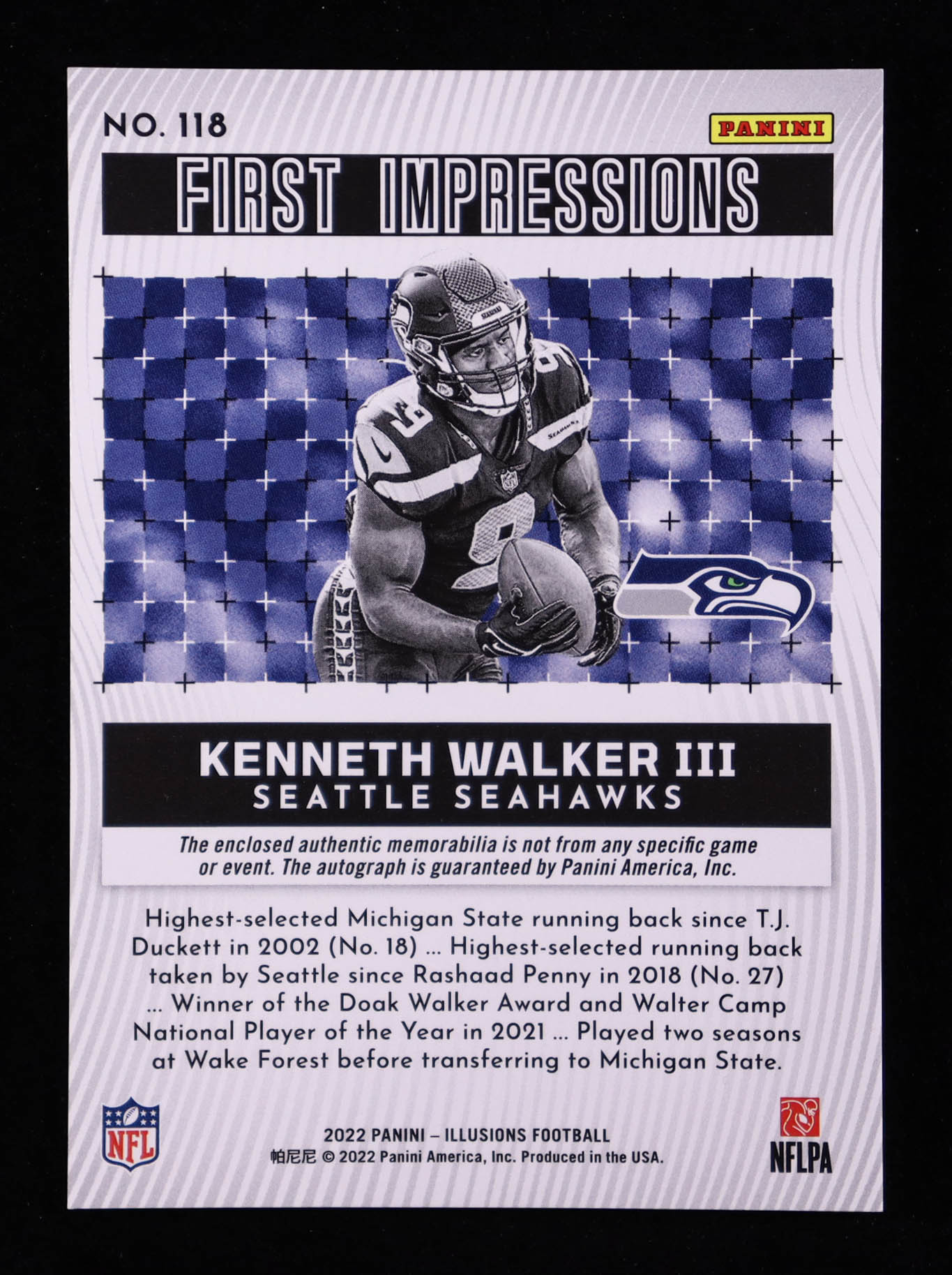 Kenneth Walker III 2022 Panini Illusions Red #118 Jersey Autograph #20/99 RC