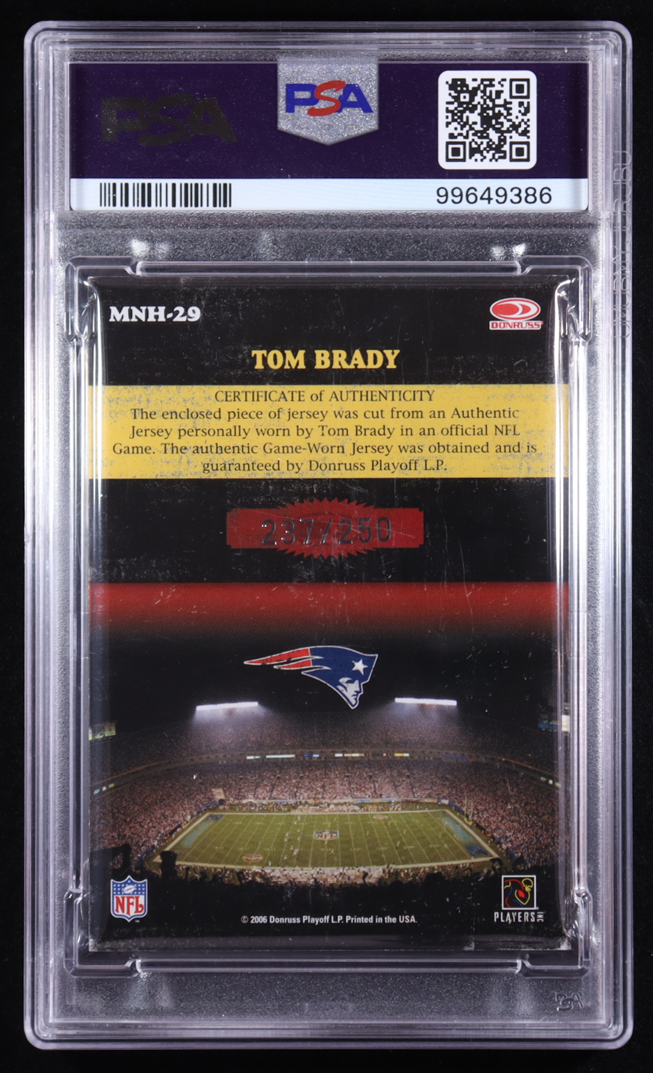 Tom Brady 2006 Donruss Classics Monday Night Heroes Jerseys #29 #237/250 (PSA 8)