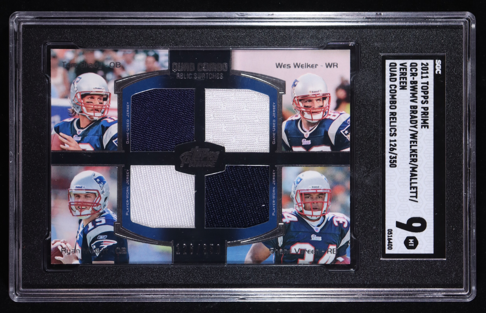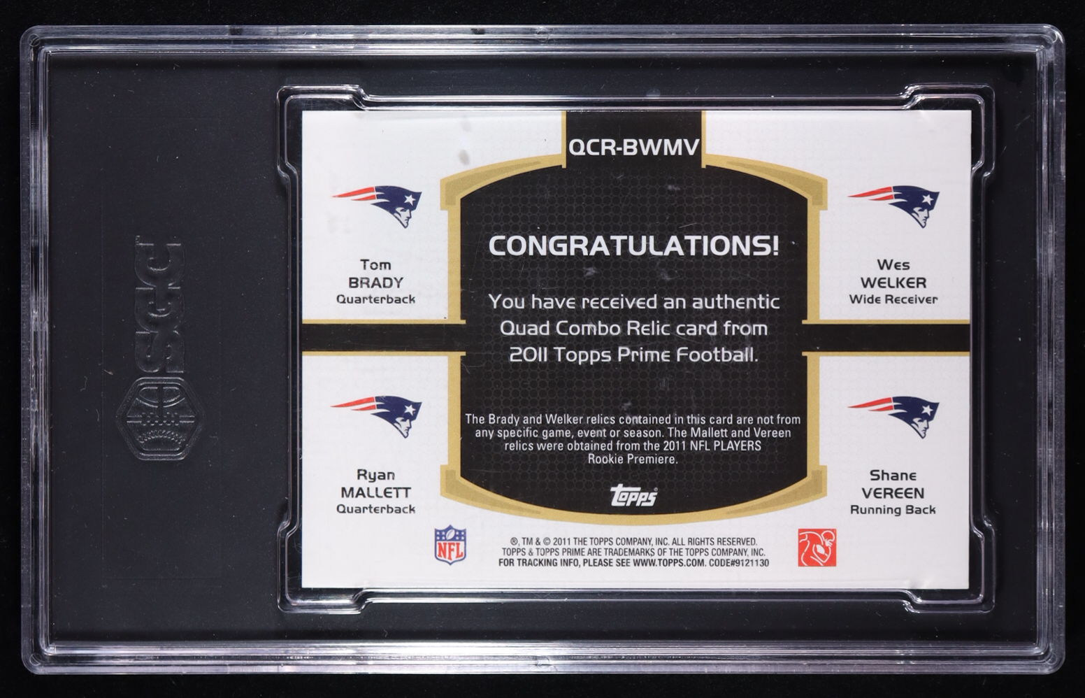 Tom Brady / Wes Welker / Ryan Mallett / Shane Vereen 2011 Topps Prime Quad Relics #BWMV #126/350 (SGC 9)