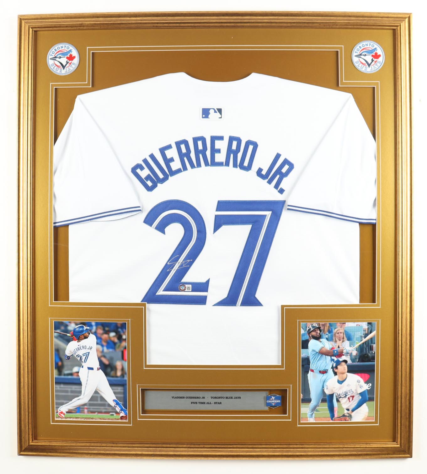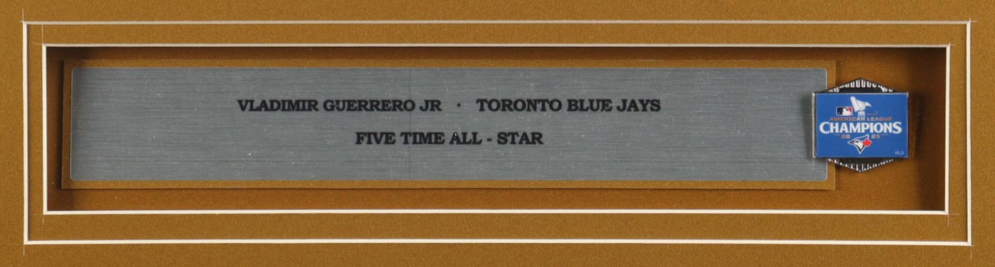 Vladimir Guerrero Jr. Signed Custom Framed Jersey Display with 2025 AL Champions Pin & Statistics Plaque (Beckett)