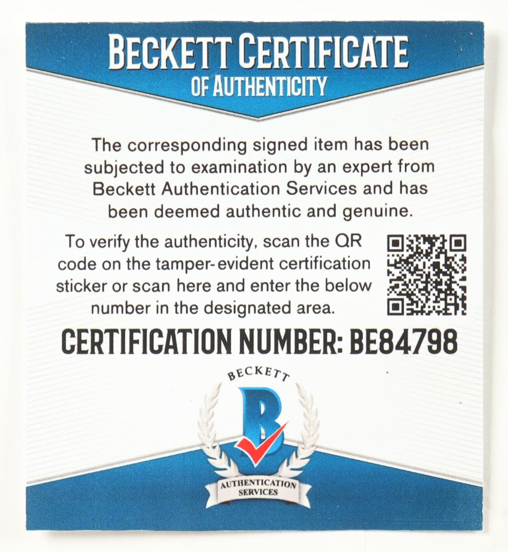 The autograph includes an official Beckett Authentication Services serially-numbered hologram and matching COA for authenticity purposes.
