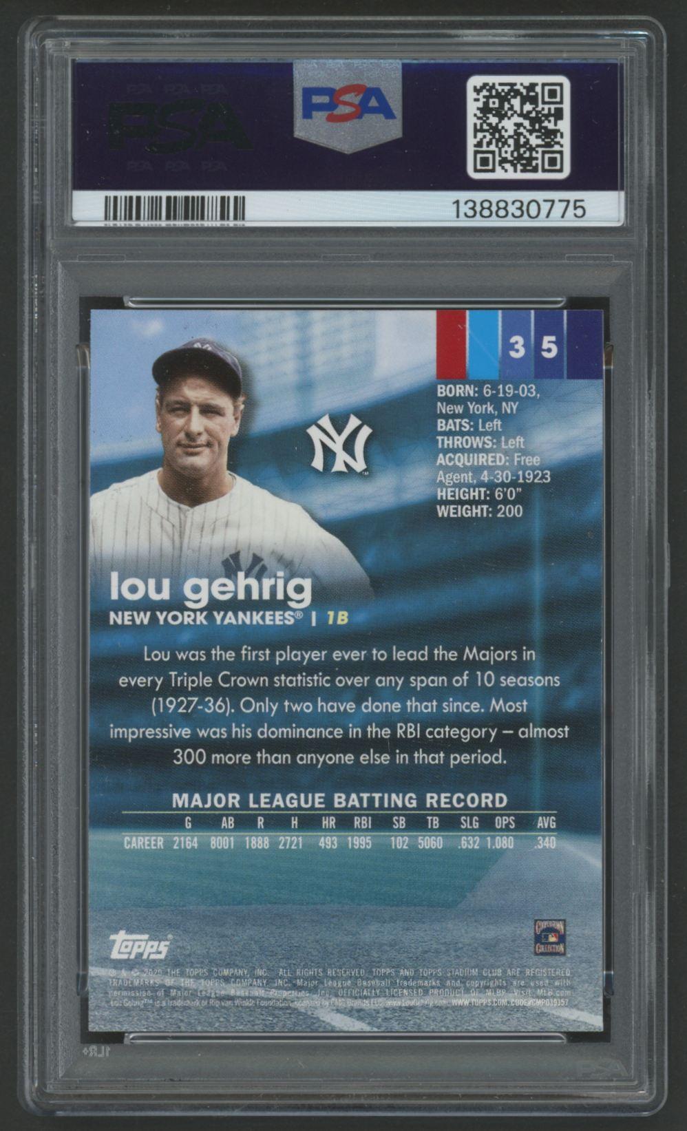 Lou Gehrig 2020 Stadium Club #35 (PSA 10)