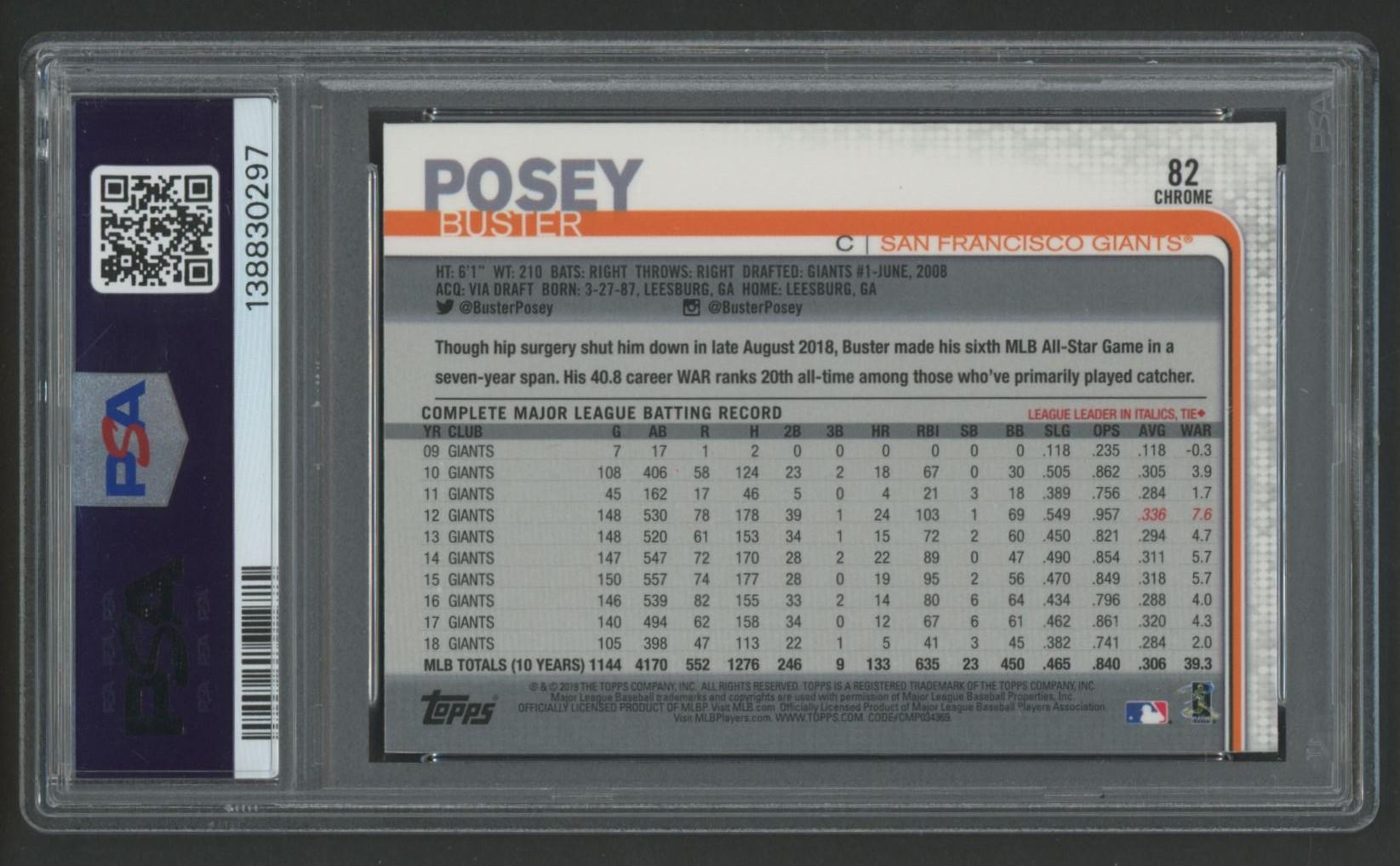 Buster Posey 2019 Topps Chrome Prism Refractor #82 (PSA 10)
