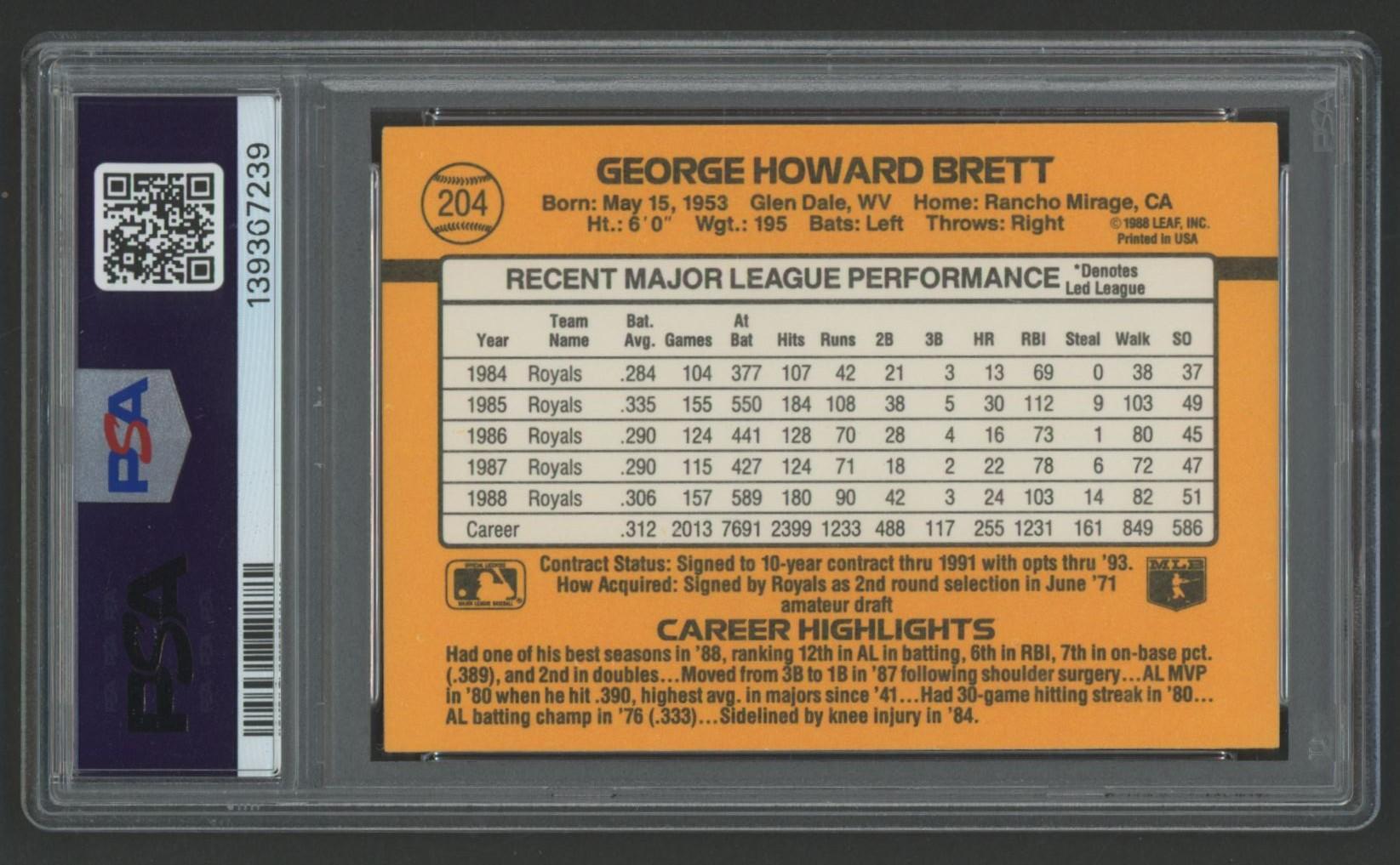 George Brett 1989 Donruss #204 (PSA 10)
