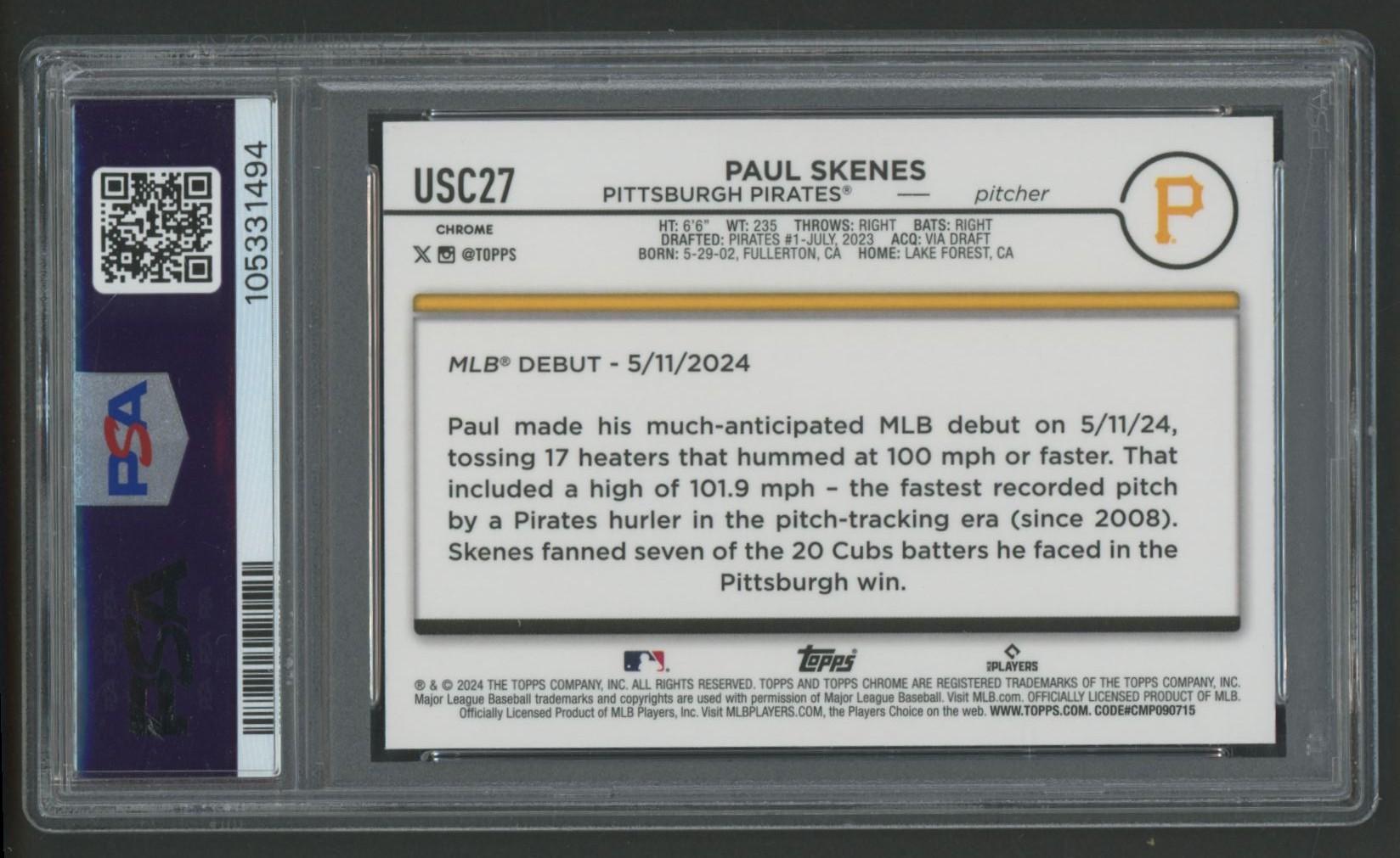Paul Skenes 2024 Topps Chrome Update X-Fractor #USC27 RC (PSA 9)