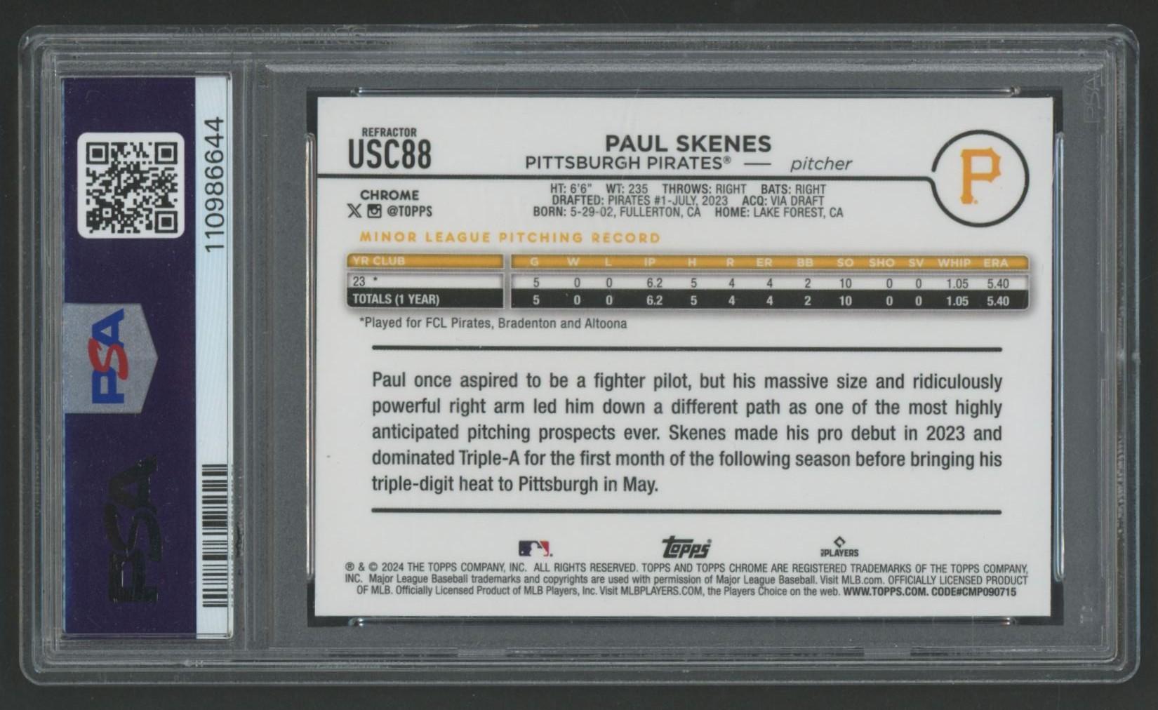 Paul Skenes 2024 Topps Chrome Update Prism Refractor #USC88 RC (PSA 9)
