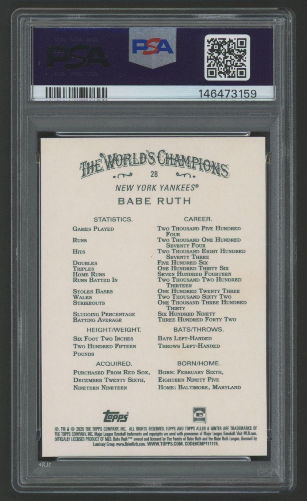 Babe Ruth 2025 Allen & Ginter #28 (PSA 10)