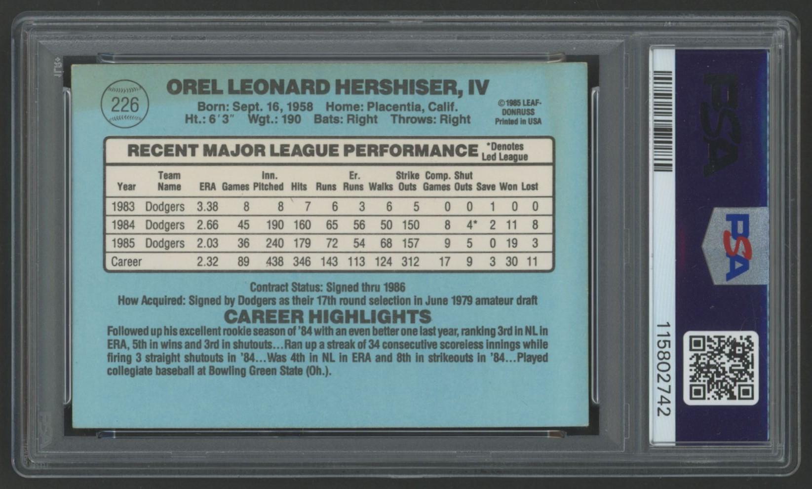 Orel Hershiser Signed 1986 Donruss #226 (PSA | Auto 9)