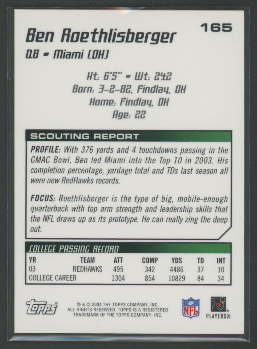 Ben Roethlisberger 2004 Topps Chrome Draft Picks and Prospects Gold #165 RC