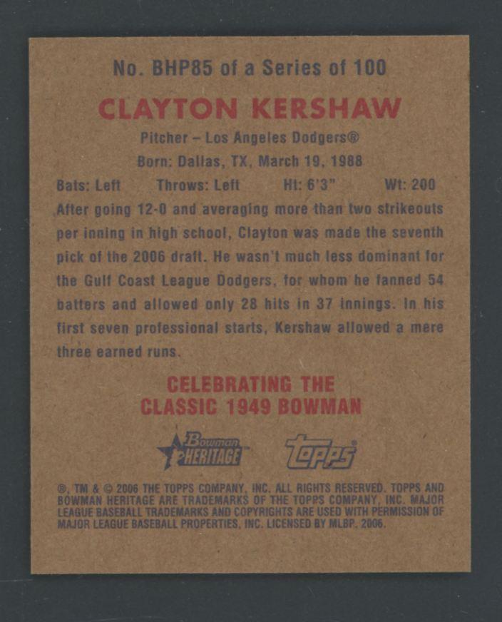 Clayton Kershaw 2006 Bowman Heritage Prospects Mini #BHP85 RC