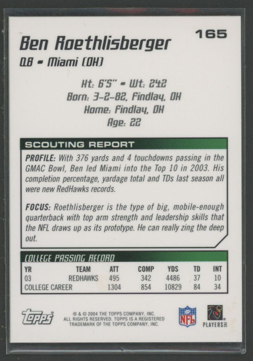 Ben Roethlisberger 2004 Topps Chrome Draft Picks and Prospects Gold #165 RC