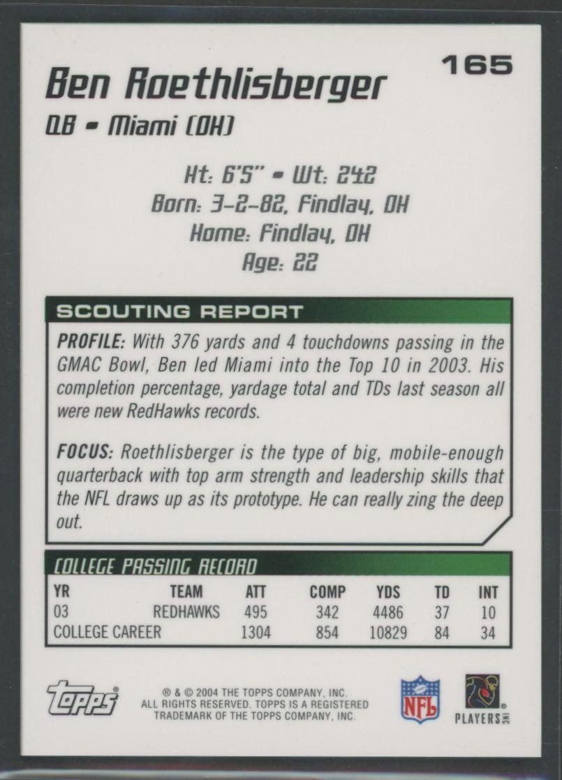 Ben Roethlisberger 2004 Topps Chrome Draft Picks and Prospects Gold #165 RC