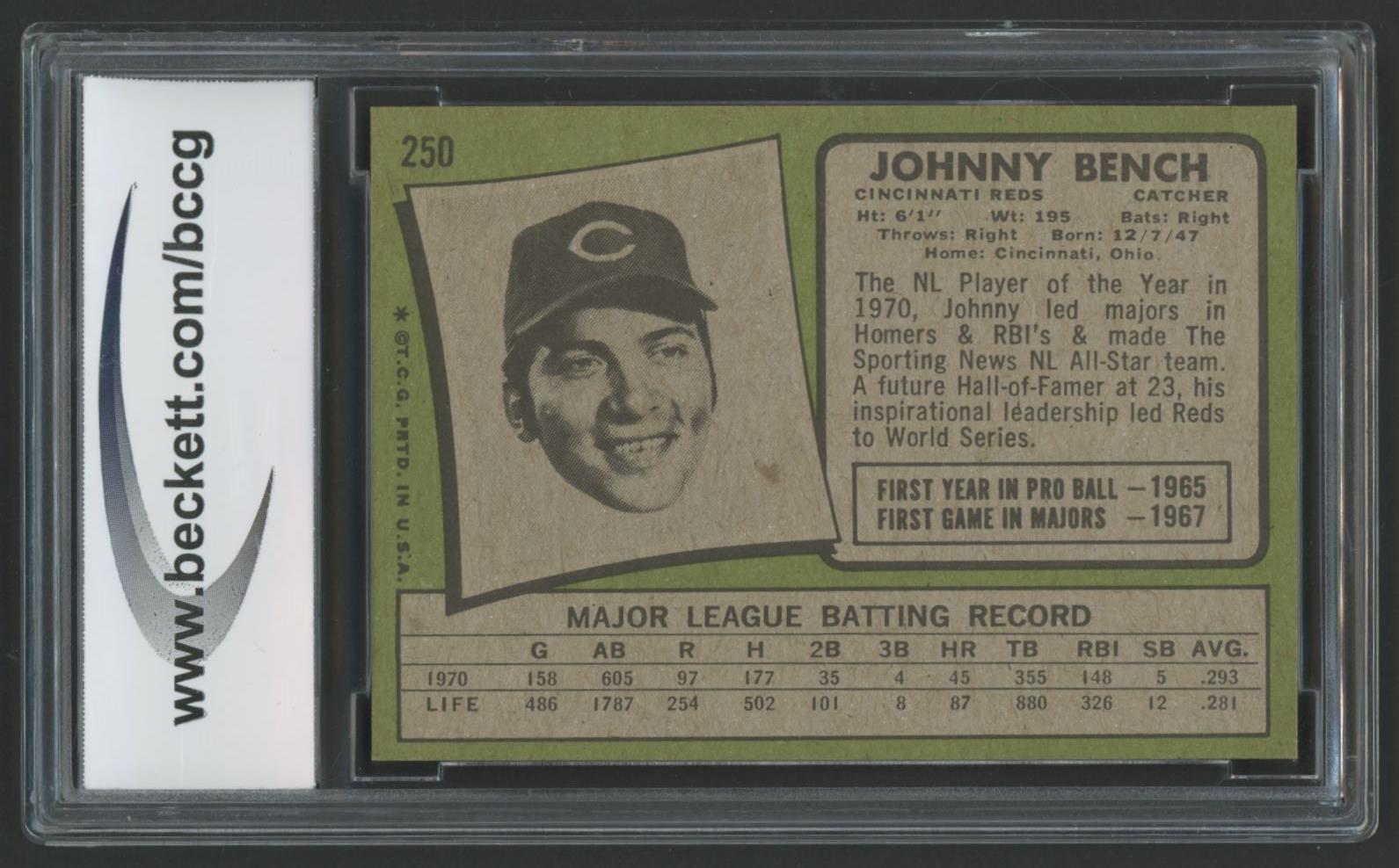 Johnny Bench 1971 Topps #250 (BCCG 9)