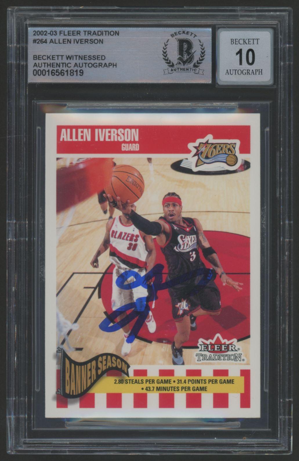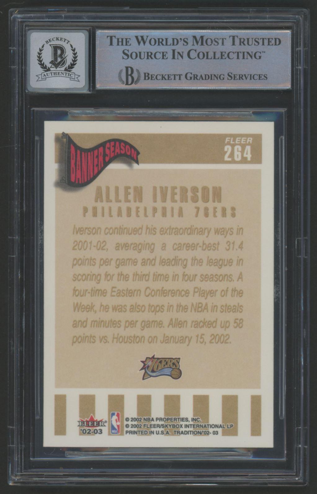 Allen Iverson Signed 2002-03 Fleer Tradition Banner #264 (BGS | Autograph Graded 10)