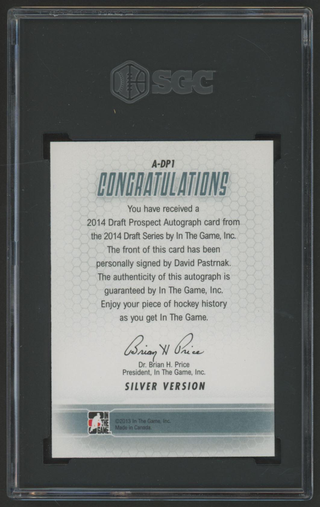 David Pastrnak 2014-15 In The Game Draft Prospects Autographed #ADP1 (SGC 9.5)