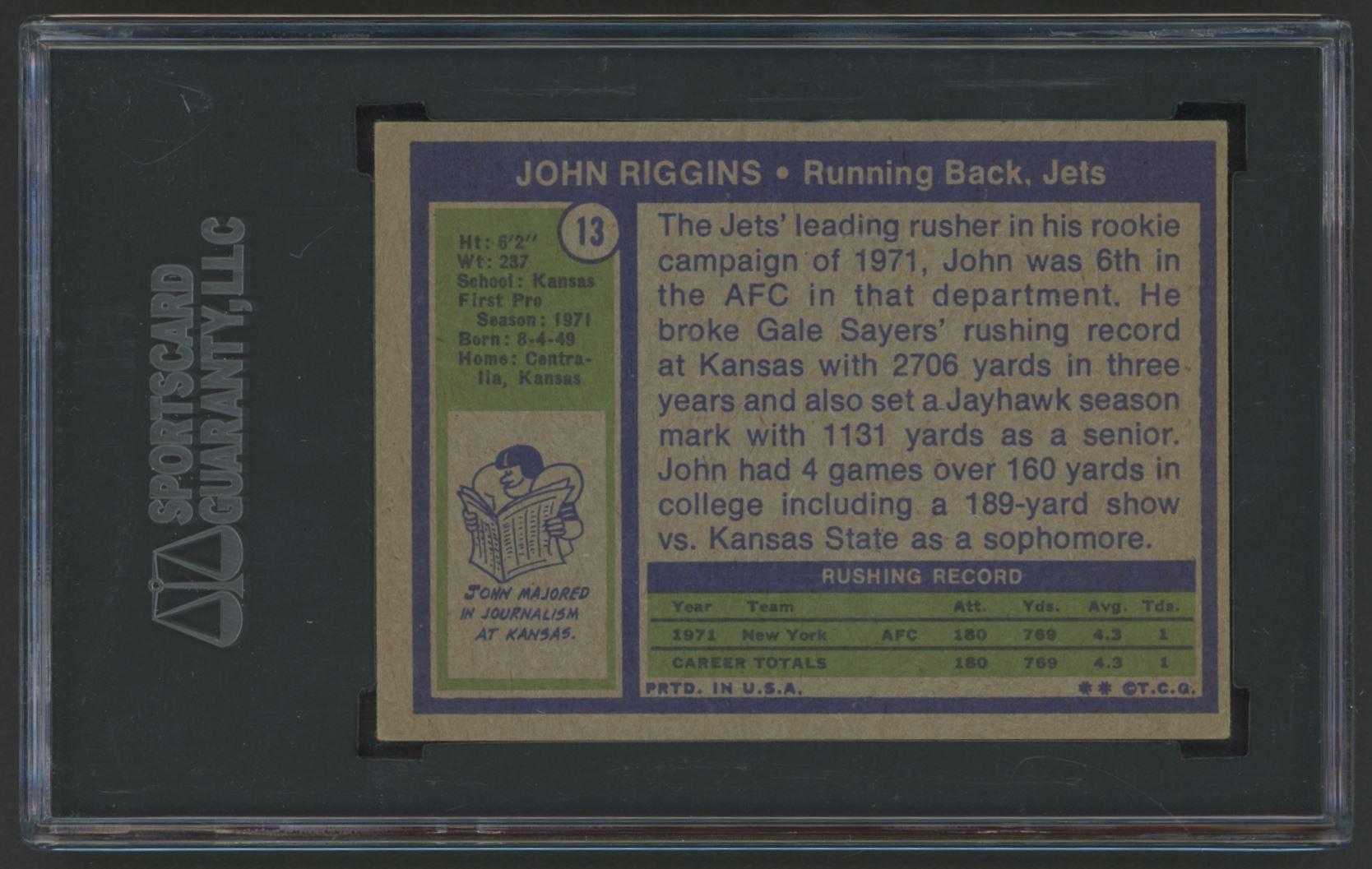Card has been hand-signed by John Riggins (New York Jets, HOF). Please see photos for details regarding the condition of the card.