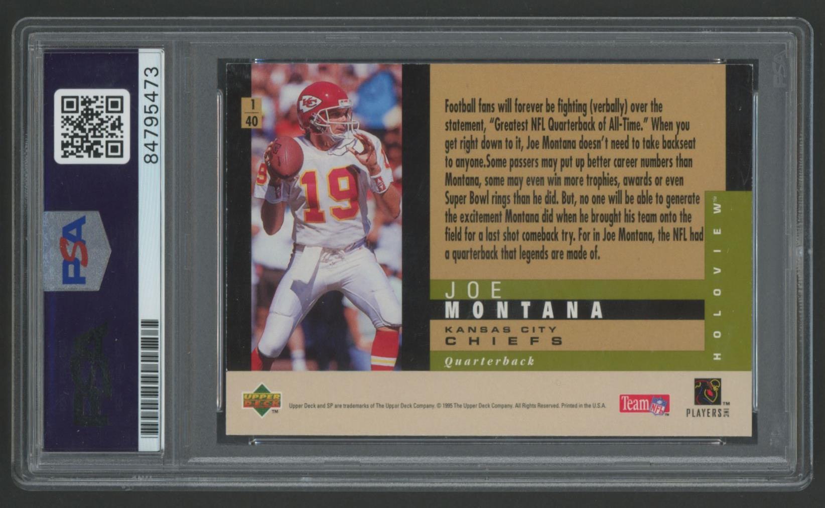 Joe Montana Signed 1995 Upper Deck Holoview #1 (PSA)