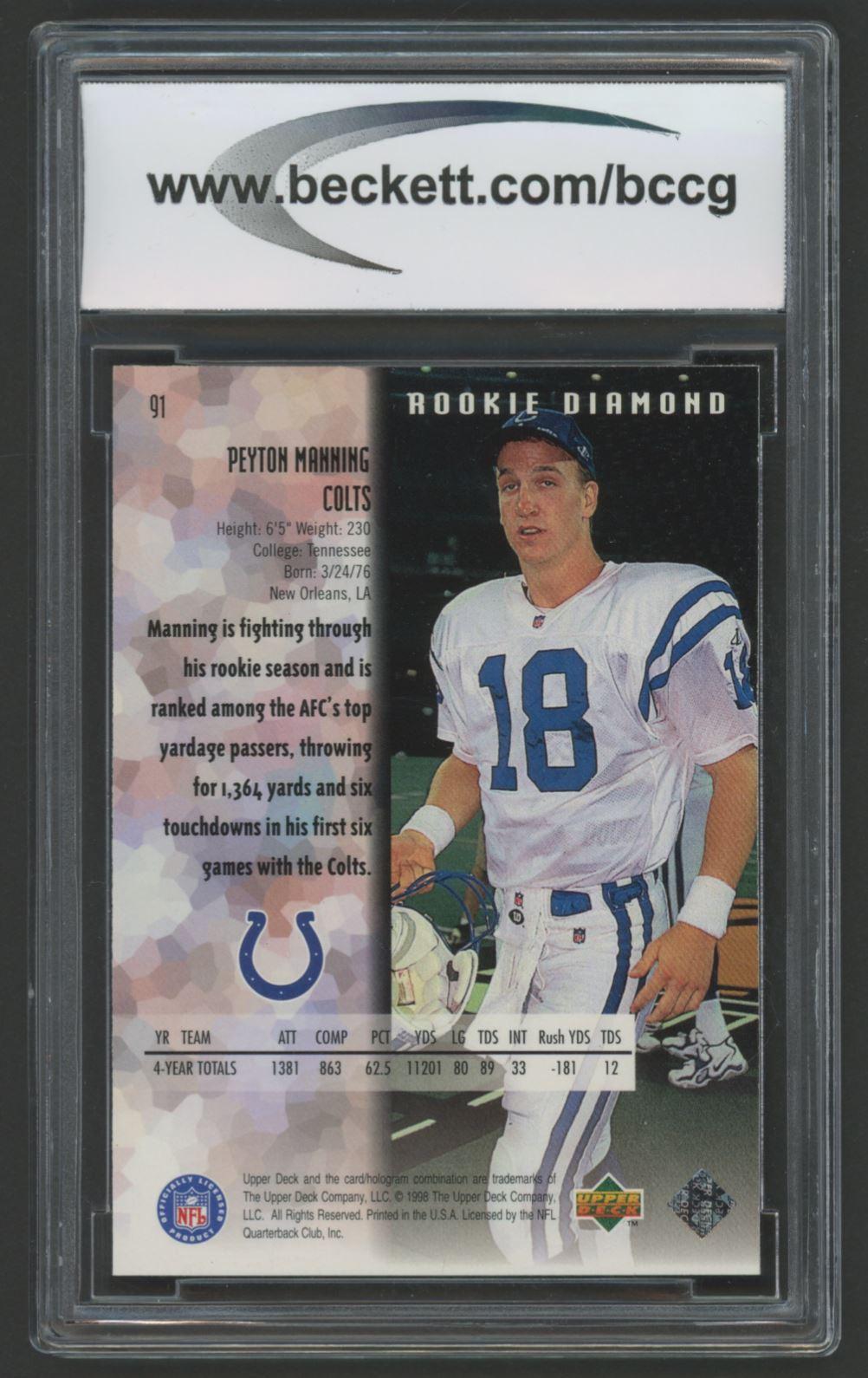 Peyton Manning 1998 Black Diamond Rookies #91 (BCCG 10)