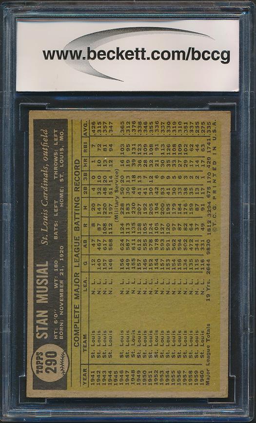 Stan Musial 1961 Topps #290 (BCCG 8)
