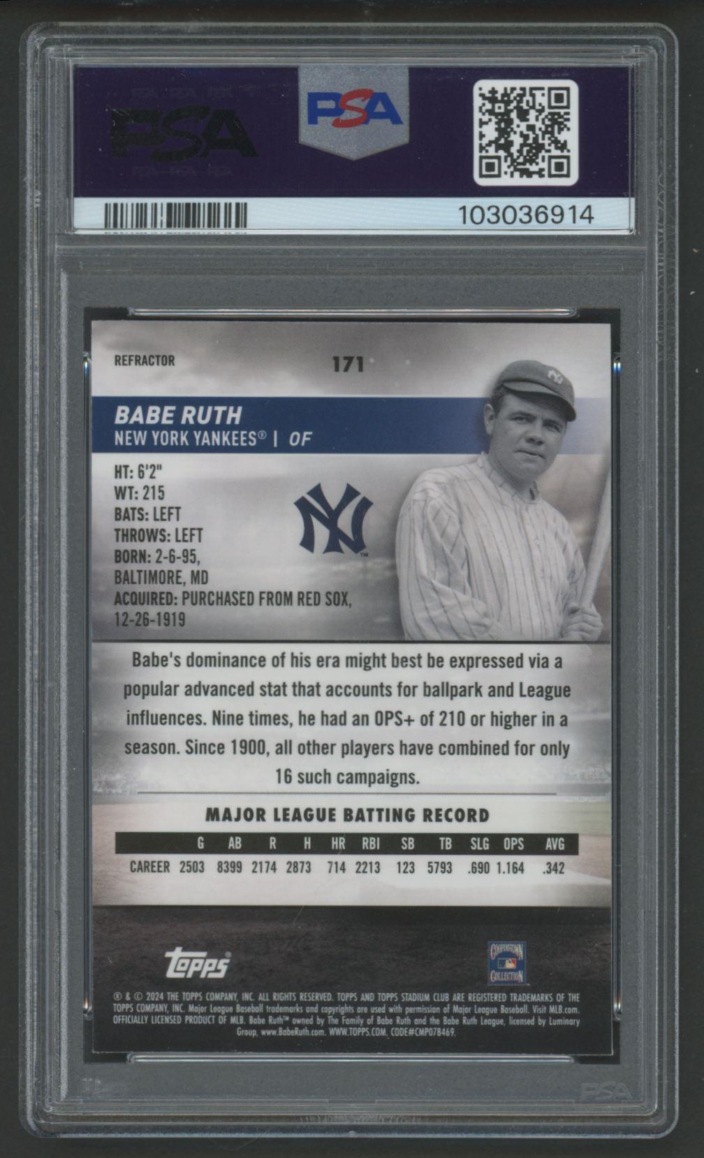 Babe Ruth 2024 Stadium Club Chrome Refractor #171 (PSA 9)