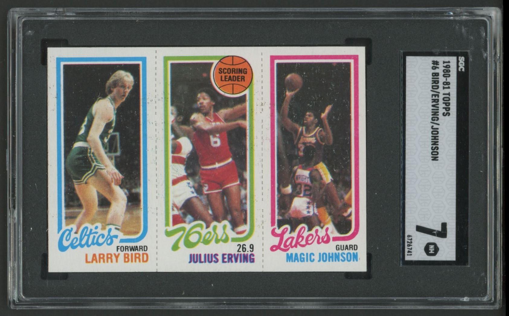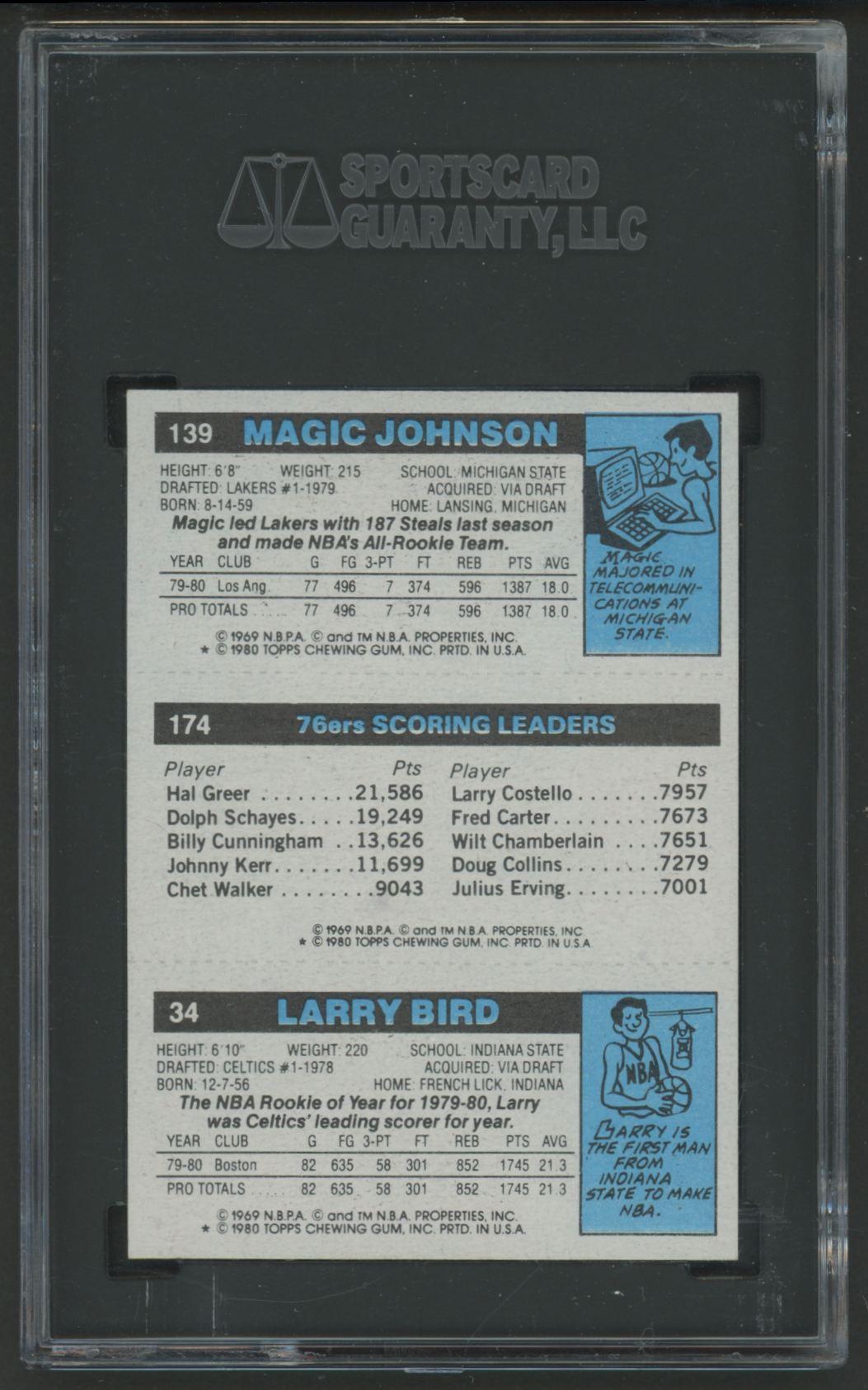 34 Larry Bird / 174 Julius Erving TL / 139 Magic Johnson 1980-81 Topps #6 RC (SGC 7)