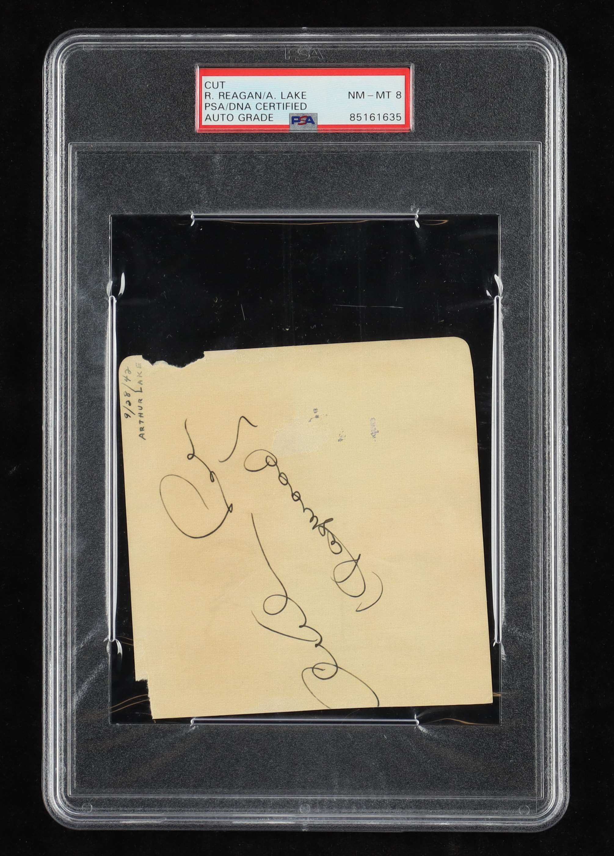 Ronald Reagan Signed 4.5x4.5 Cut (PSA | Auto 8)