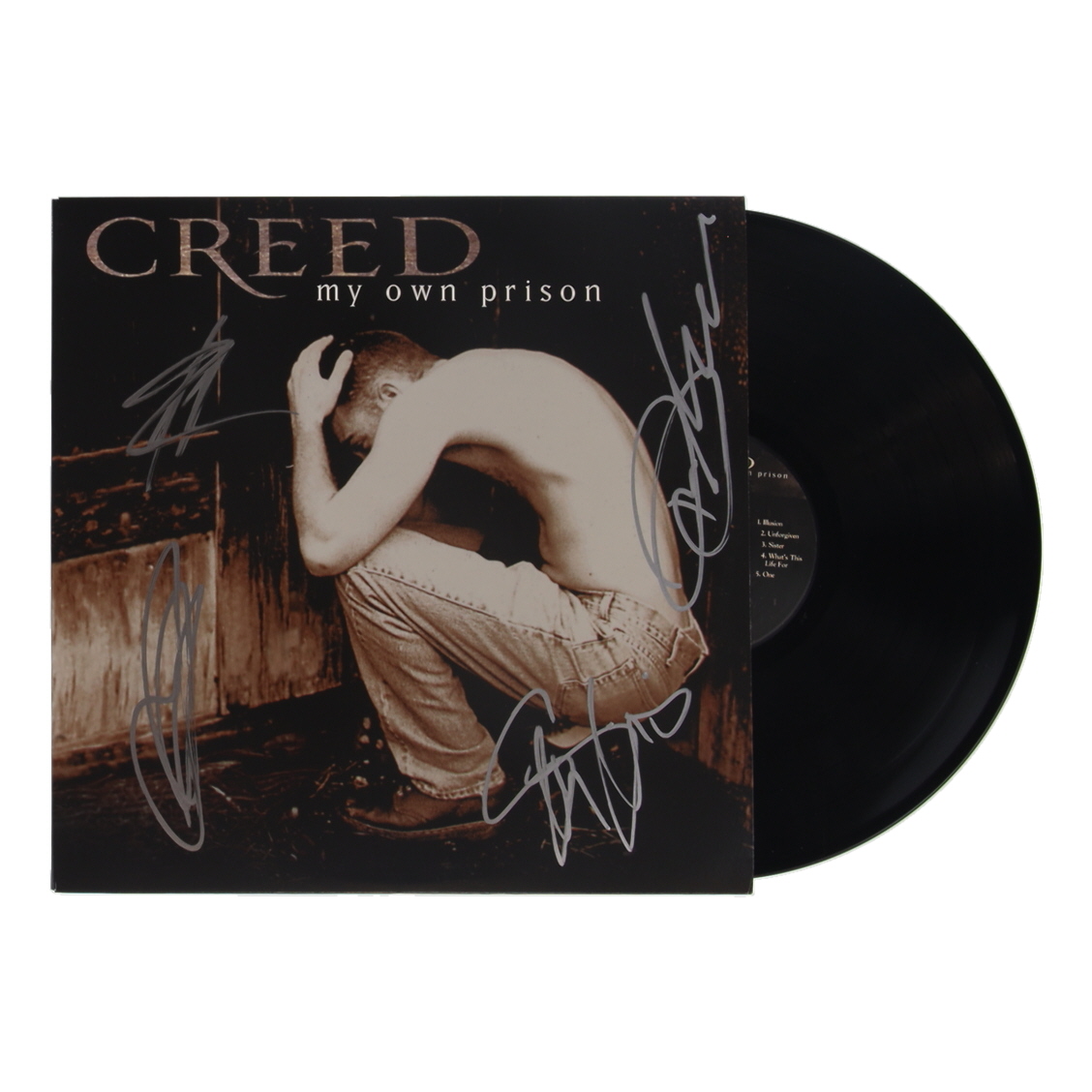 "My Own Prison" Vinyl Record Album has been hand-signed on the cover by Scott Stapp, Mark Tremonti, Brian Marshall, and Scott Phillips. Please note, the vinyl record is included as shown.