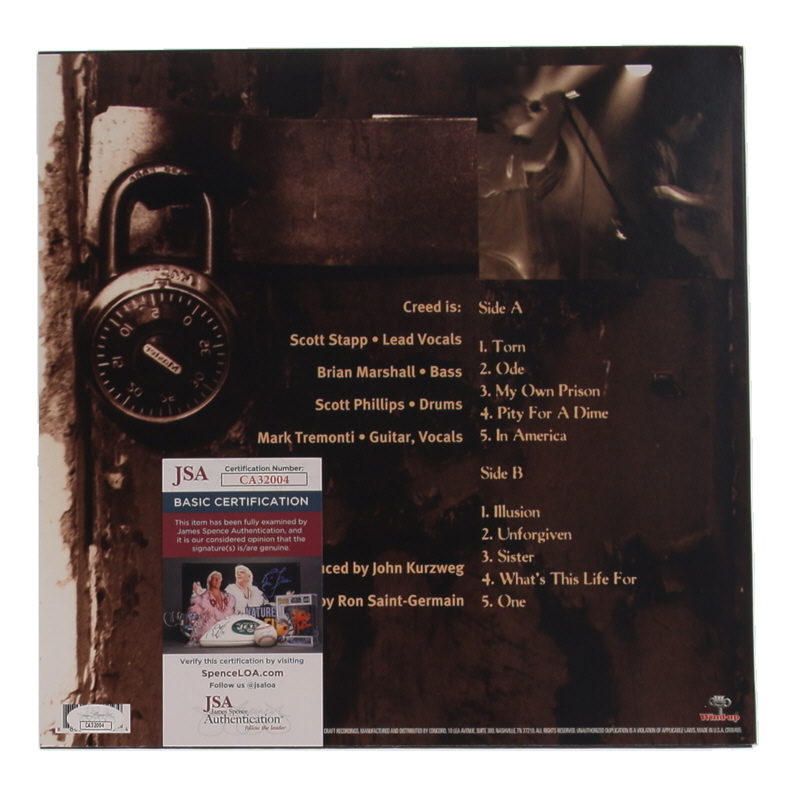 "My Own Prison" Vinyl Record Album has been hand-signed on the cover by Scott Stapp, Mark Tremonti, Brian Marshall, and Scott Phillips. Please note, the vinyl record is included as shown.