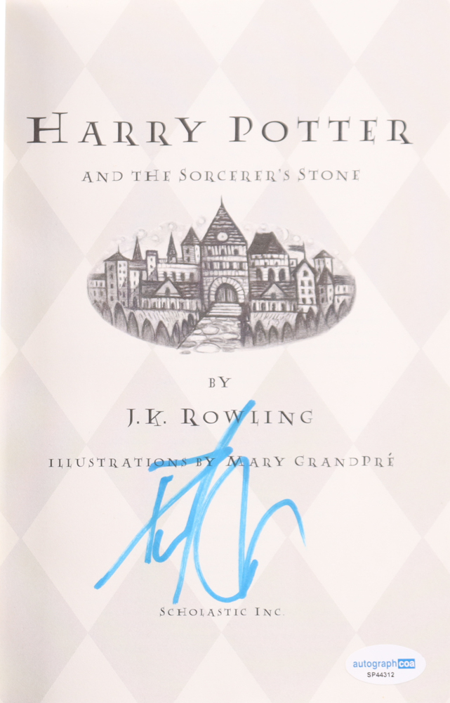 "Harry Potter and the Sorcerer's Stone" Hardcover Book. Hand-signed on the inside title page by Daniel Radcliffe (Harry Potter). Please note, there are minor creases throughout the book jacket.