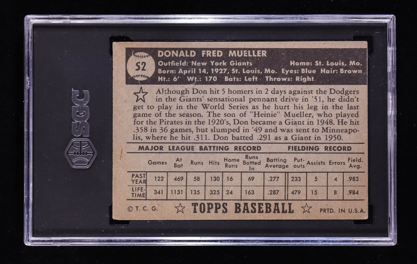 Don Mueller 1952 Topps #52A / Black Back (SGC 3)