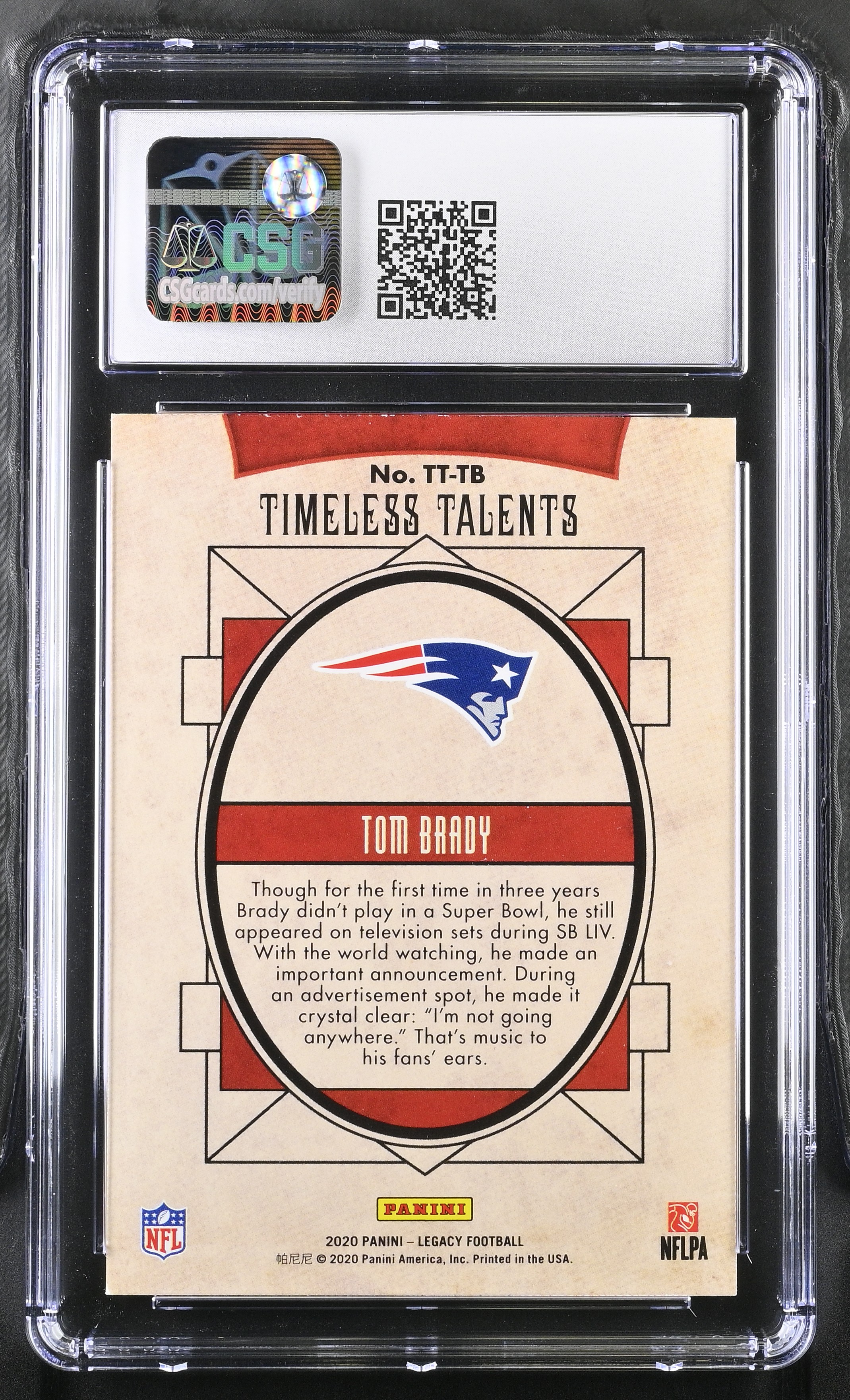Tom Brady 2020 Panini Legacy Timeless Talents #TT-TB (CGC 9.5)
